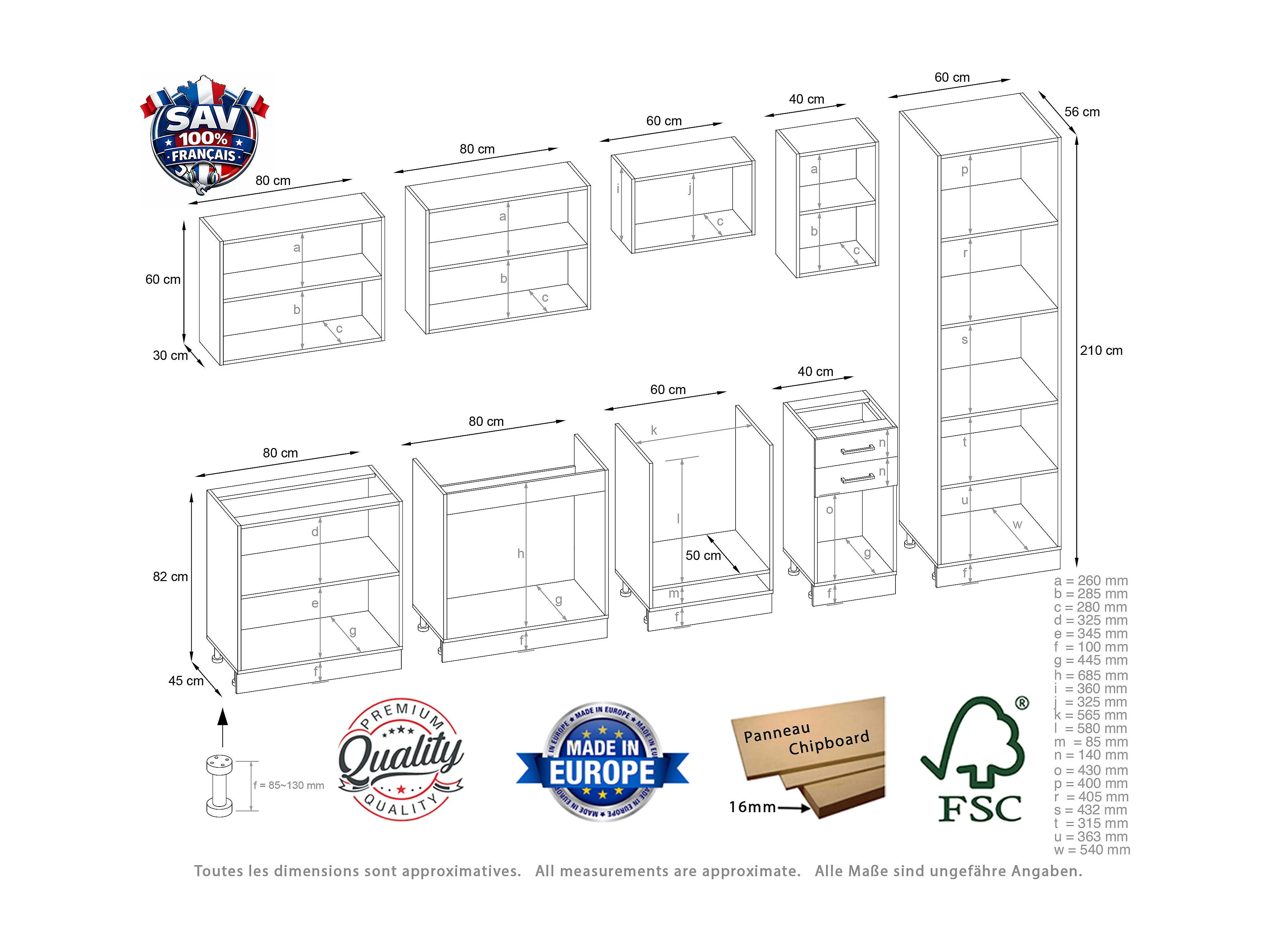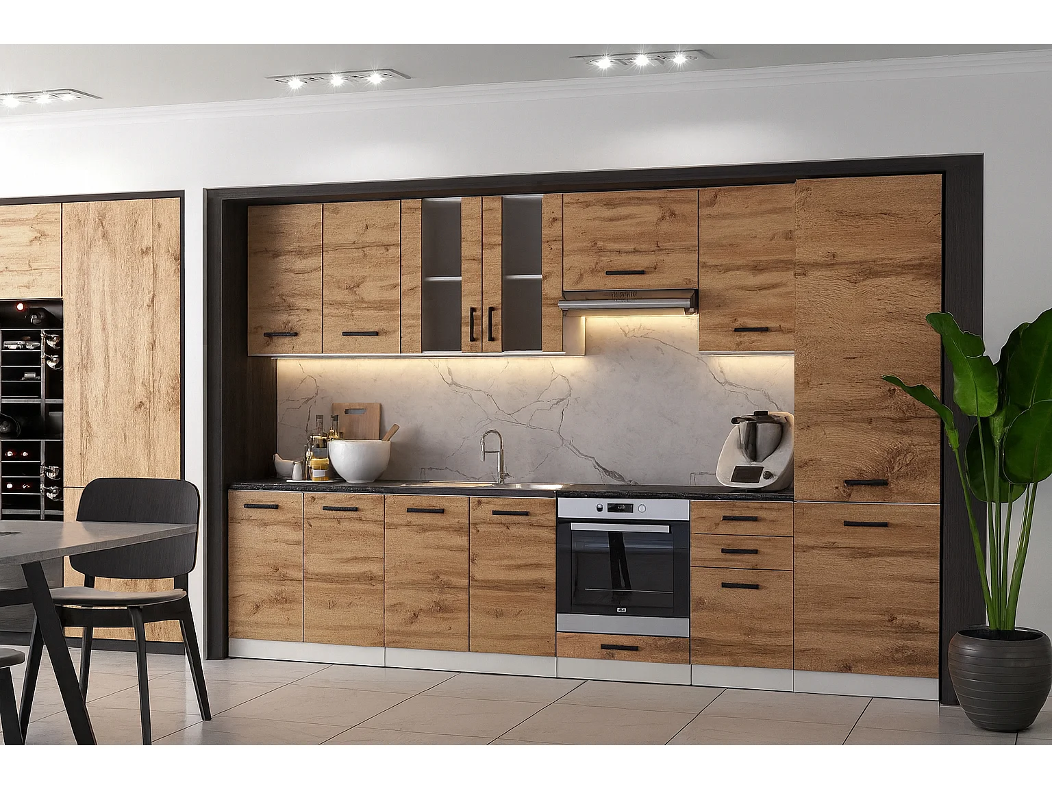 Cuisine complète Jolly BOIS chêne 320 cm colonne et encastrement four 9 éléments