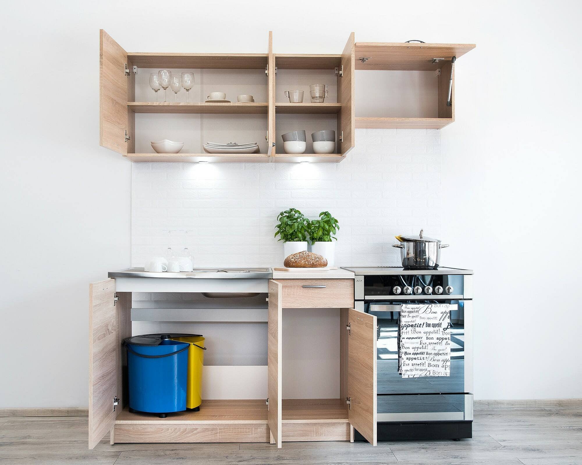 Cuisine complète Sora, ensemble compact et fonctionnel avec portes et tiroir, chêne