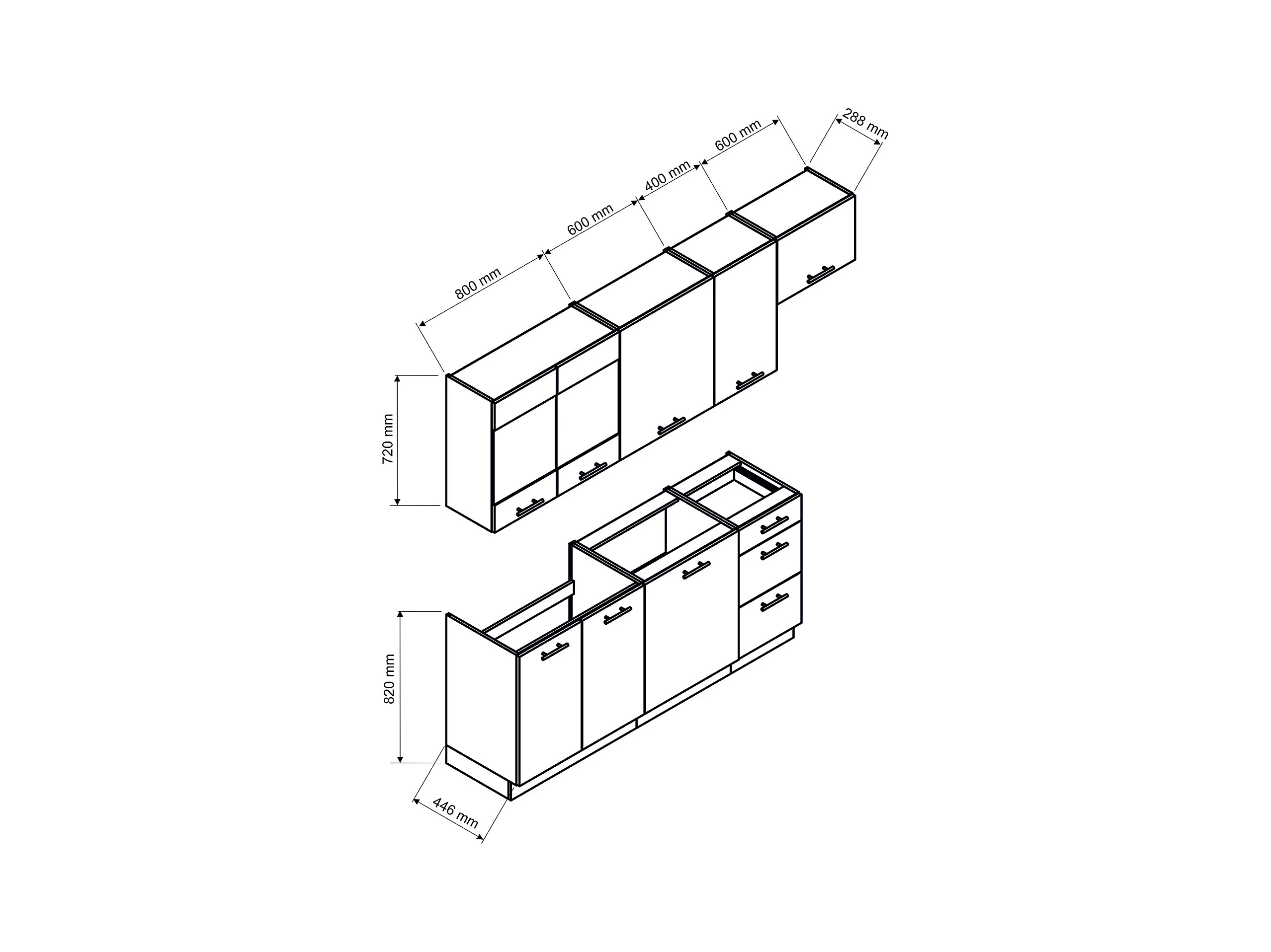 Cuisine complète Vera 7 éléments blanc brillant L 180/240 cm sans plan de travail