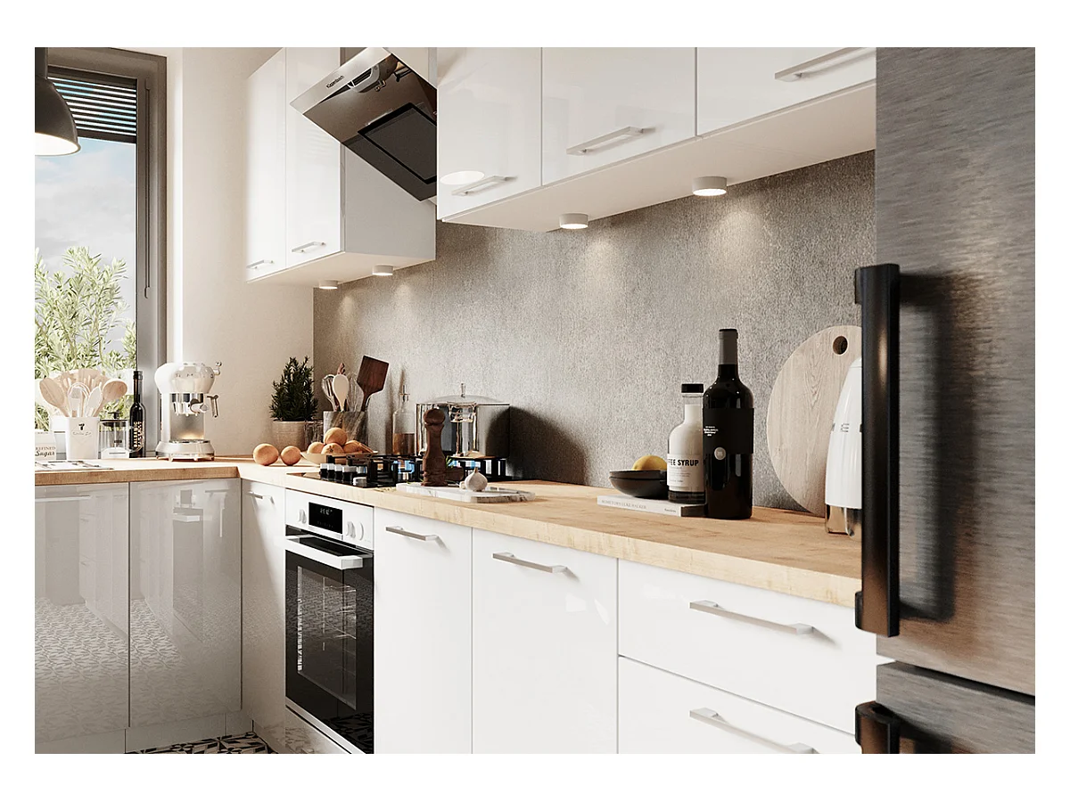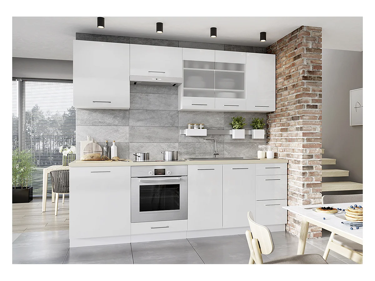 Cuisine complète Vera 8 éléments blanc brillant L 240 cm sans plan de travail