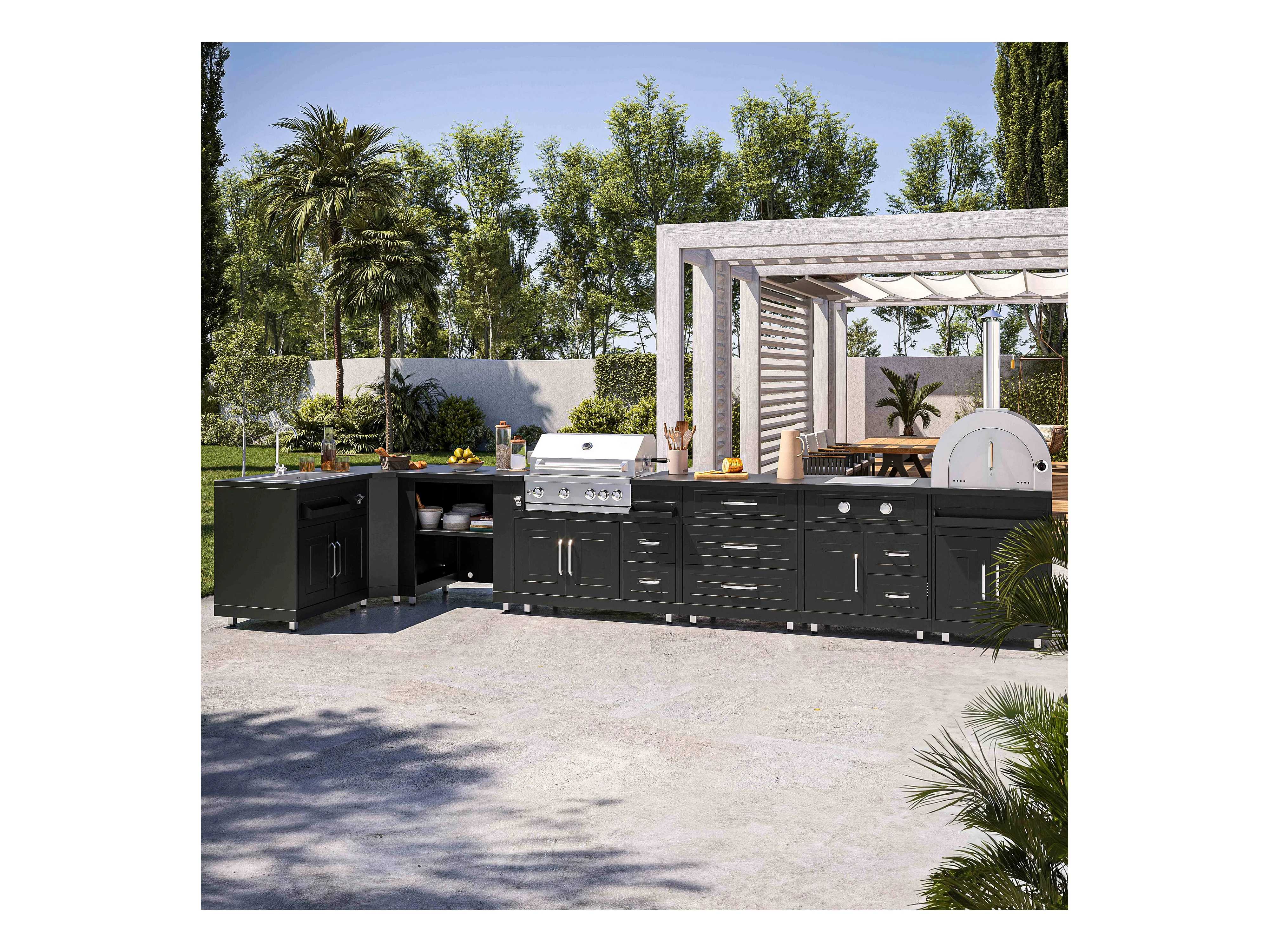 Cuisine d'extérieur 3 élements avec barbecue noir