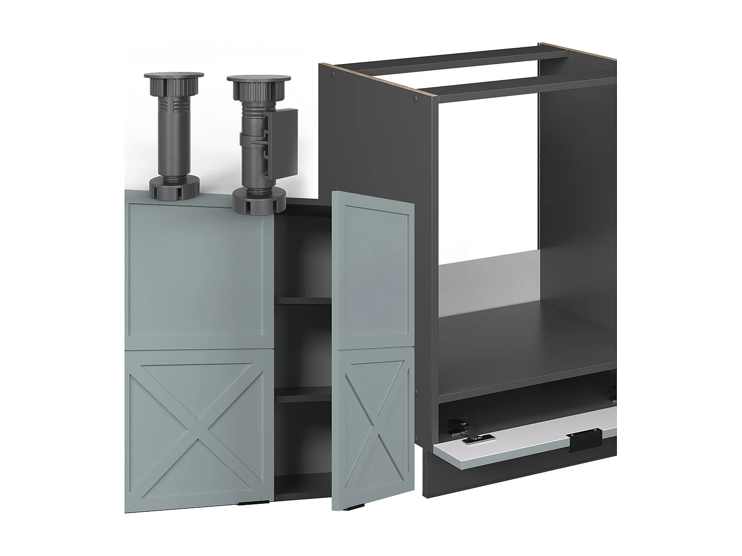 Cuisine en angle bleu clair-gris/anthracite 287x60x81.6 fame-line
