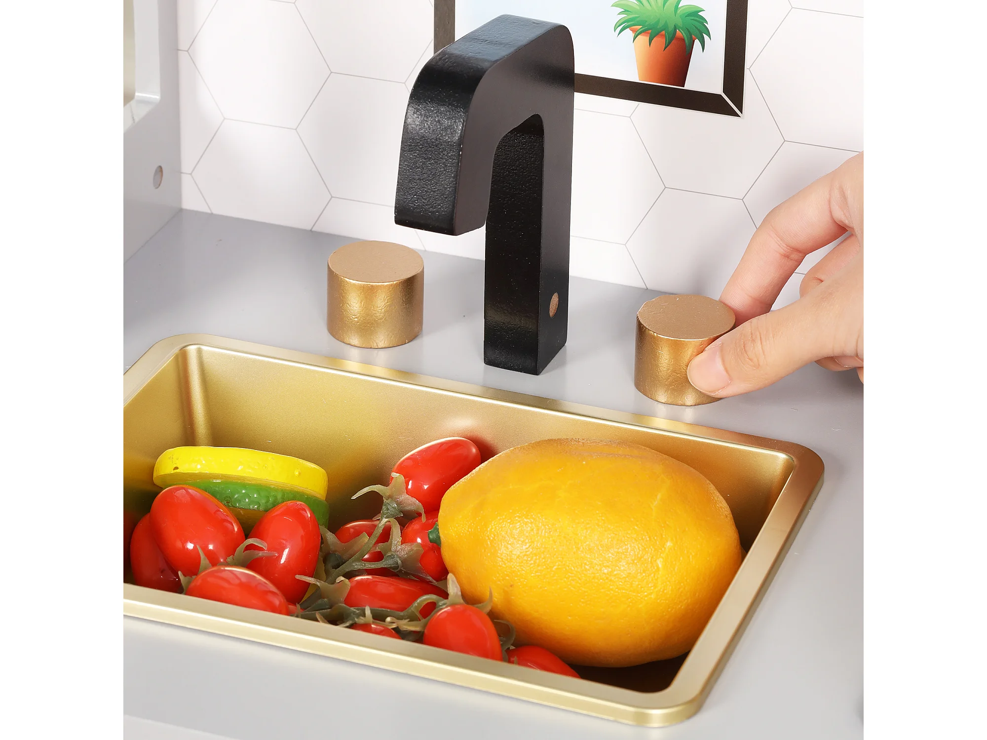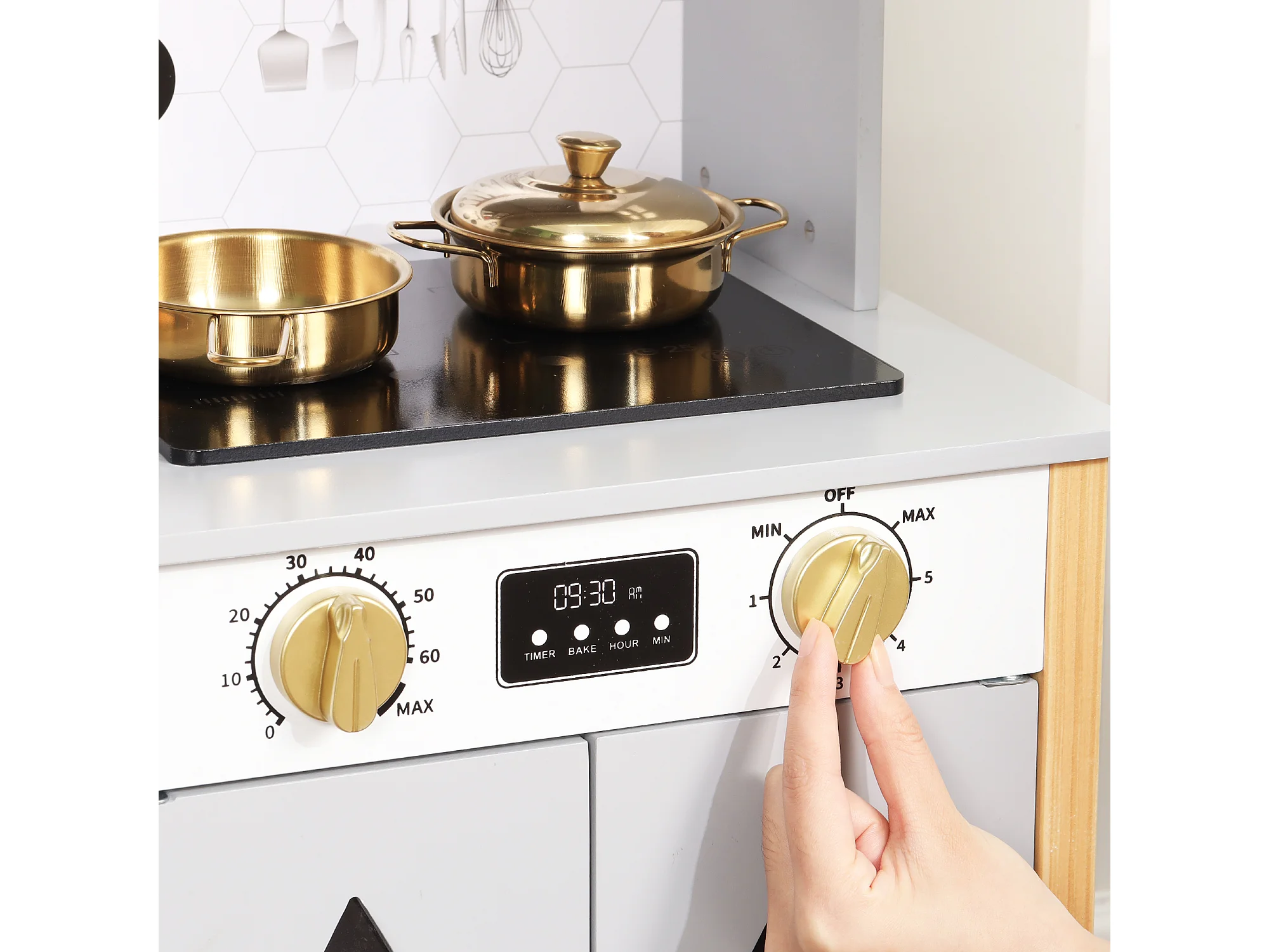 Cuisine Enfants en bois 60x28.5x92cm - cuisine entièrement équipée - Jouet d’Imitation pour 3 Ans+ (Gris)