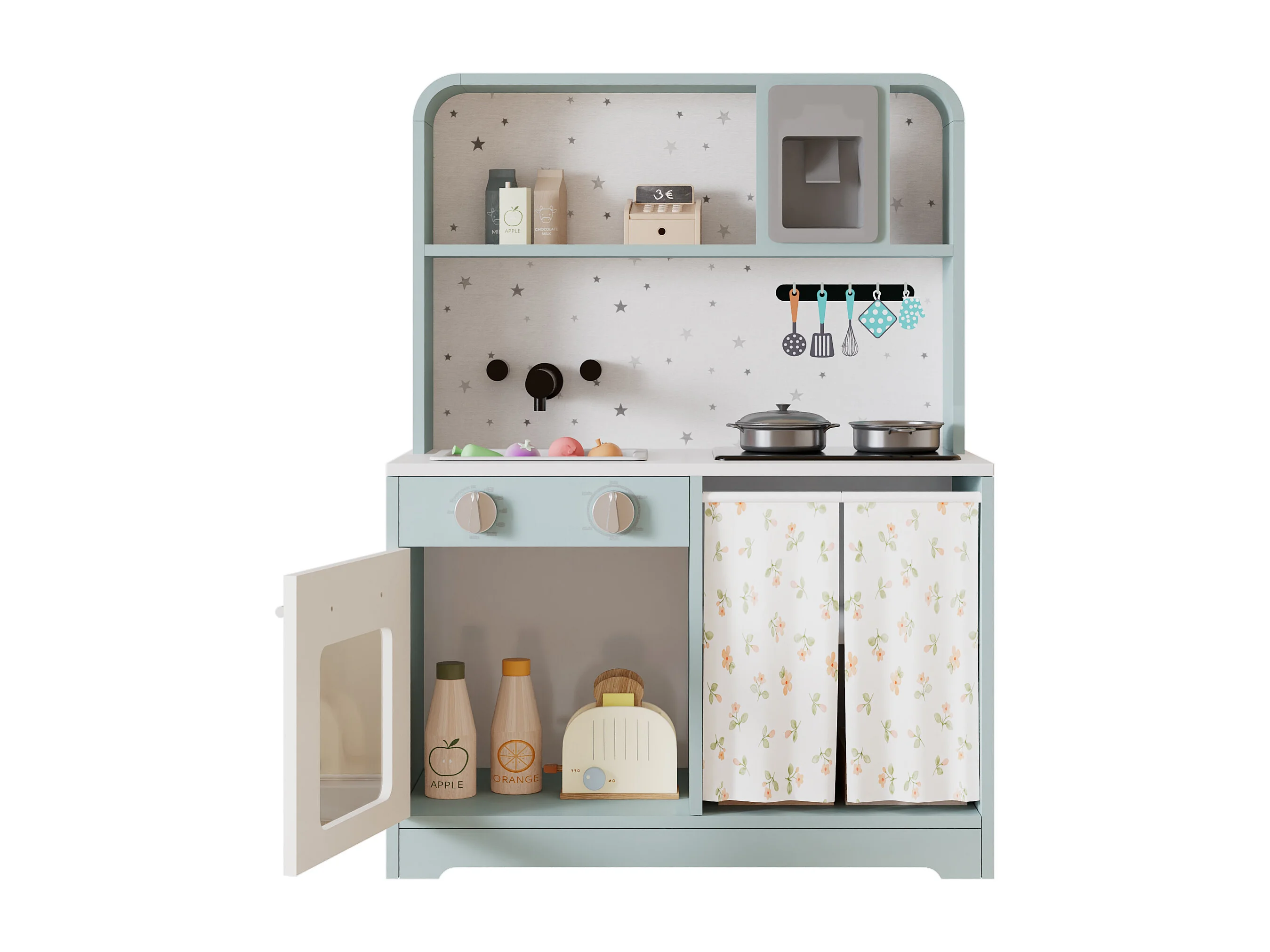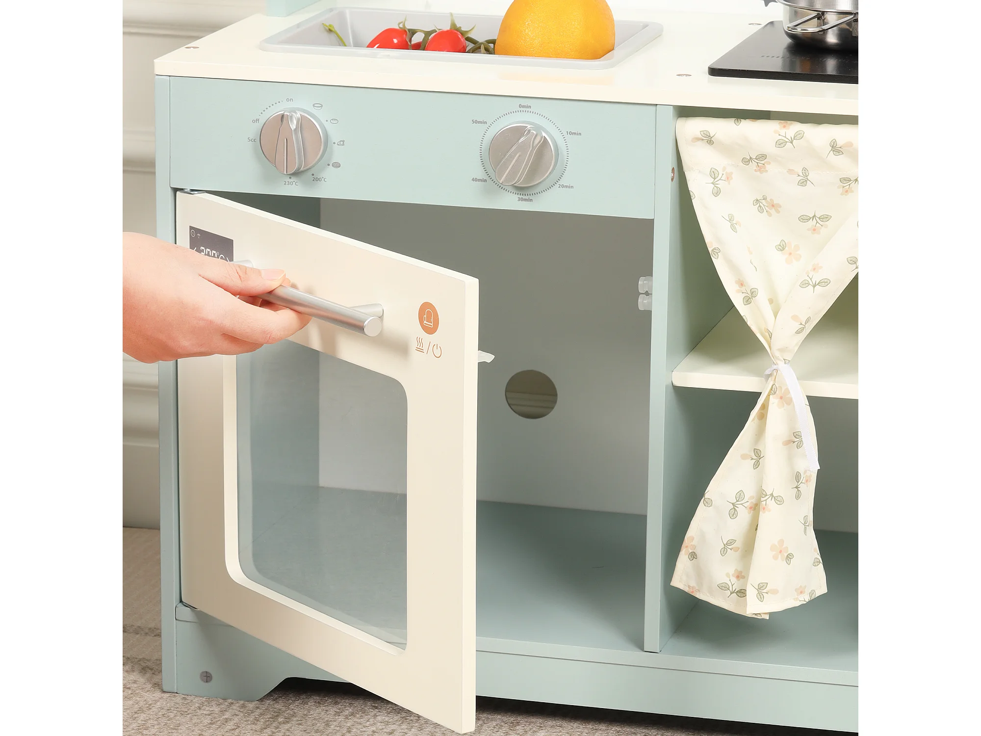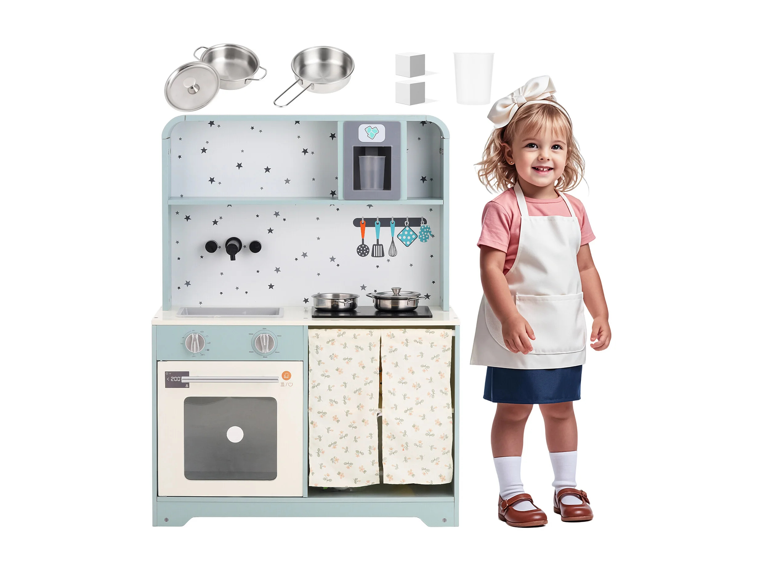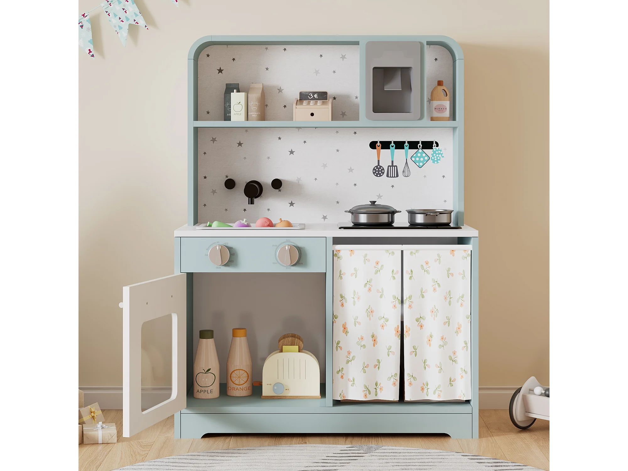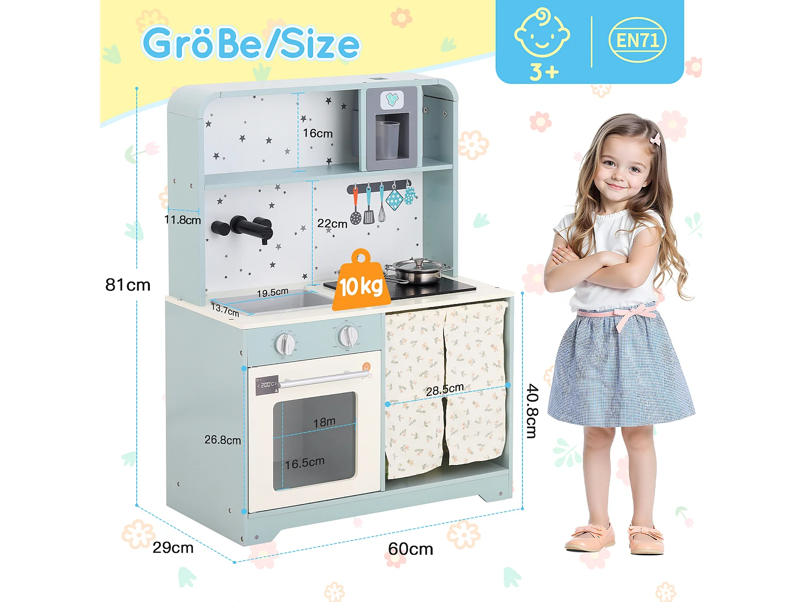 Cuisine Enfants en bois 60x29x81cm - cuisine entièrement équipée - Jouet d’Imitation pour 3 Ans+ (Bleu)