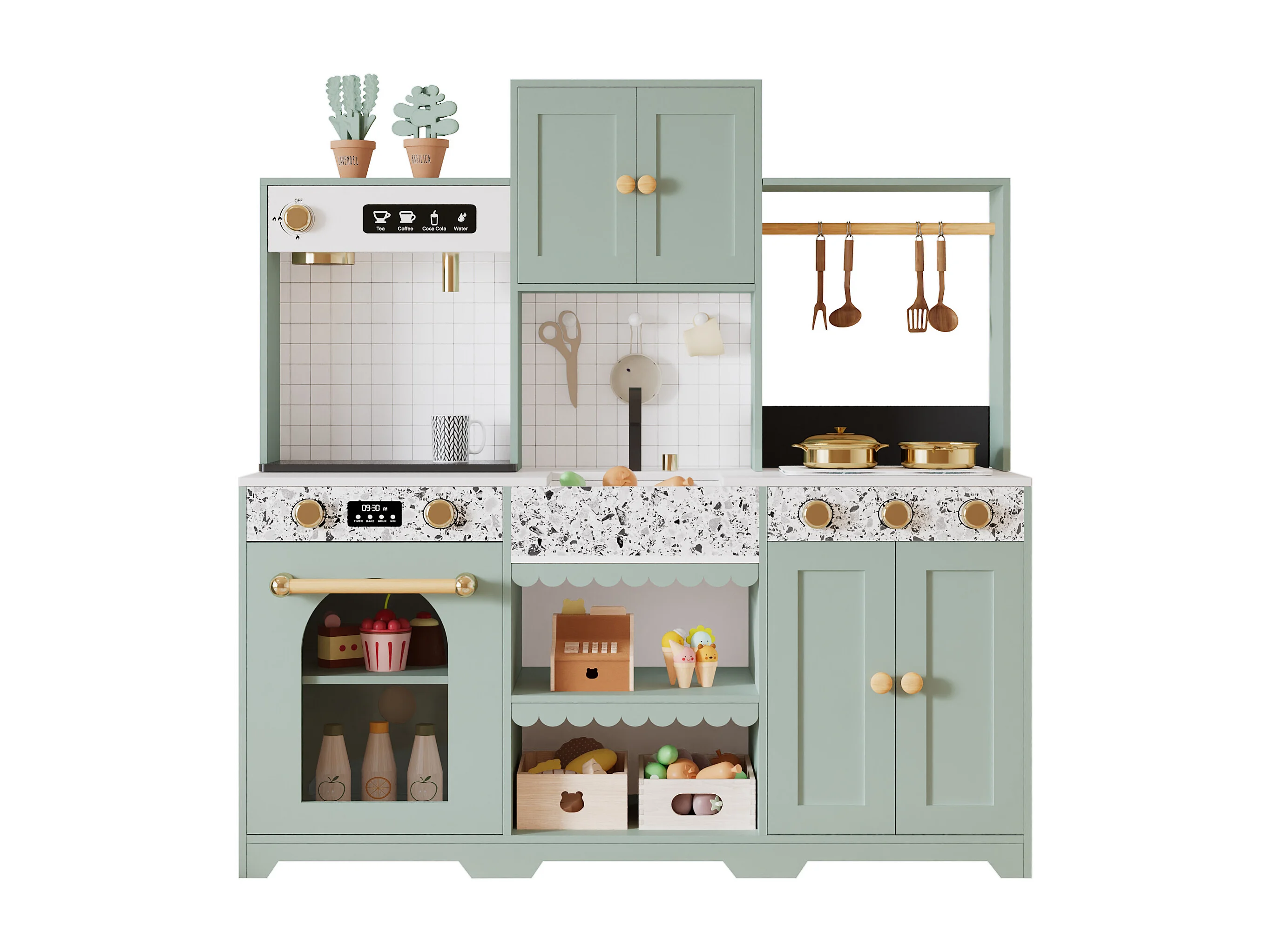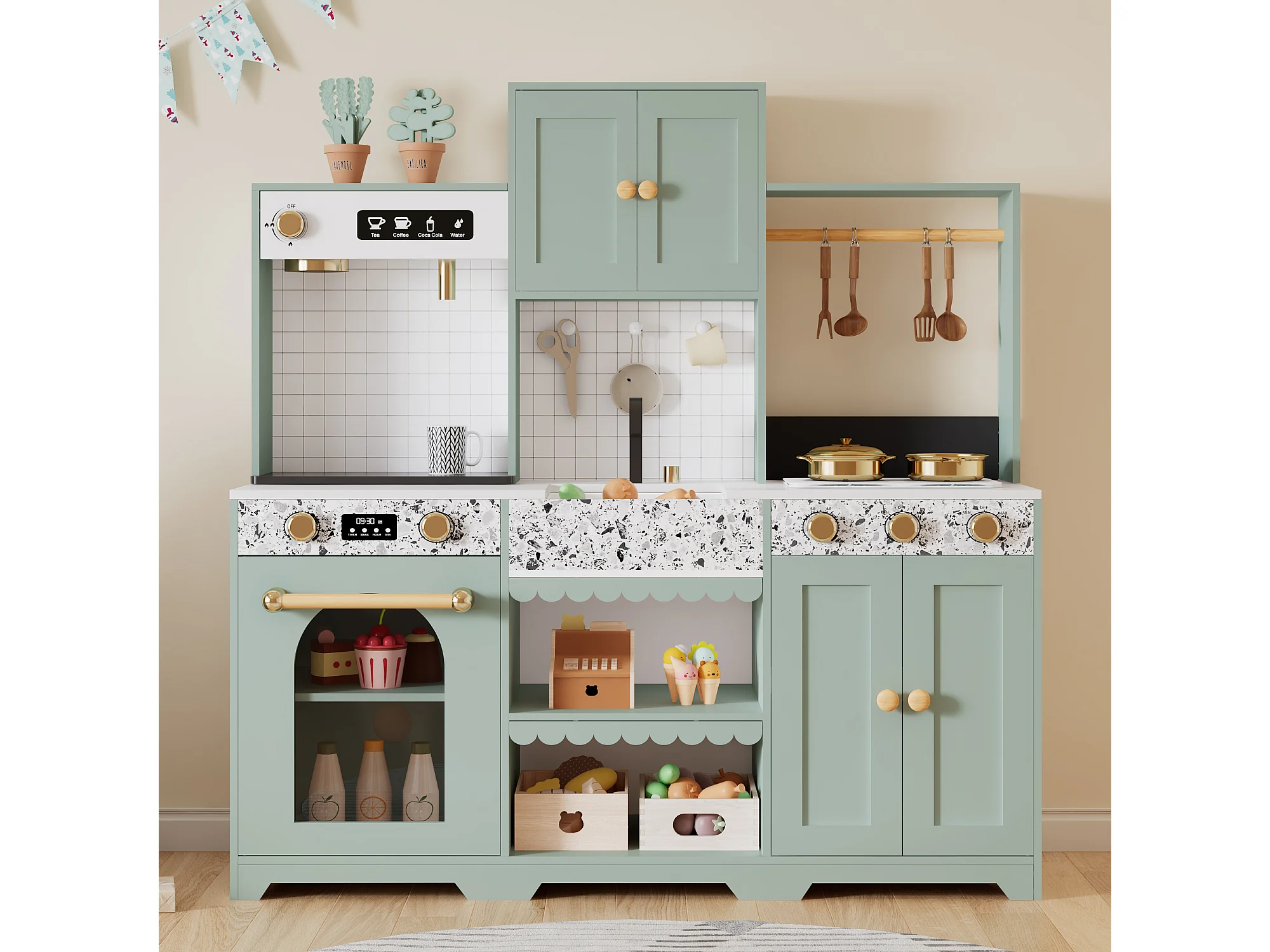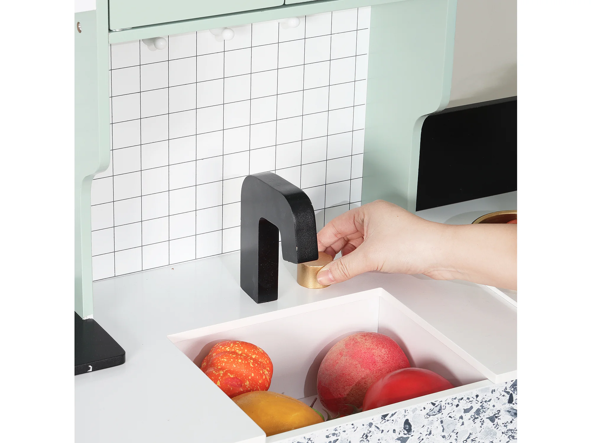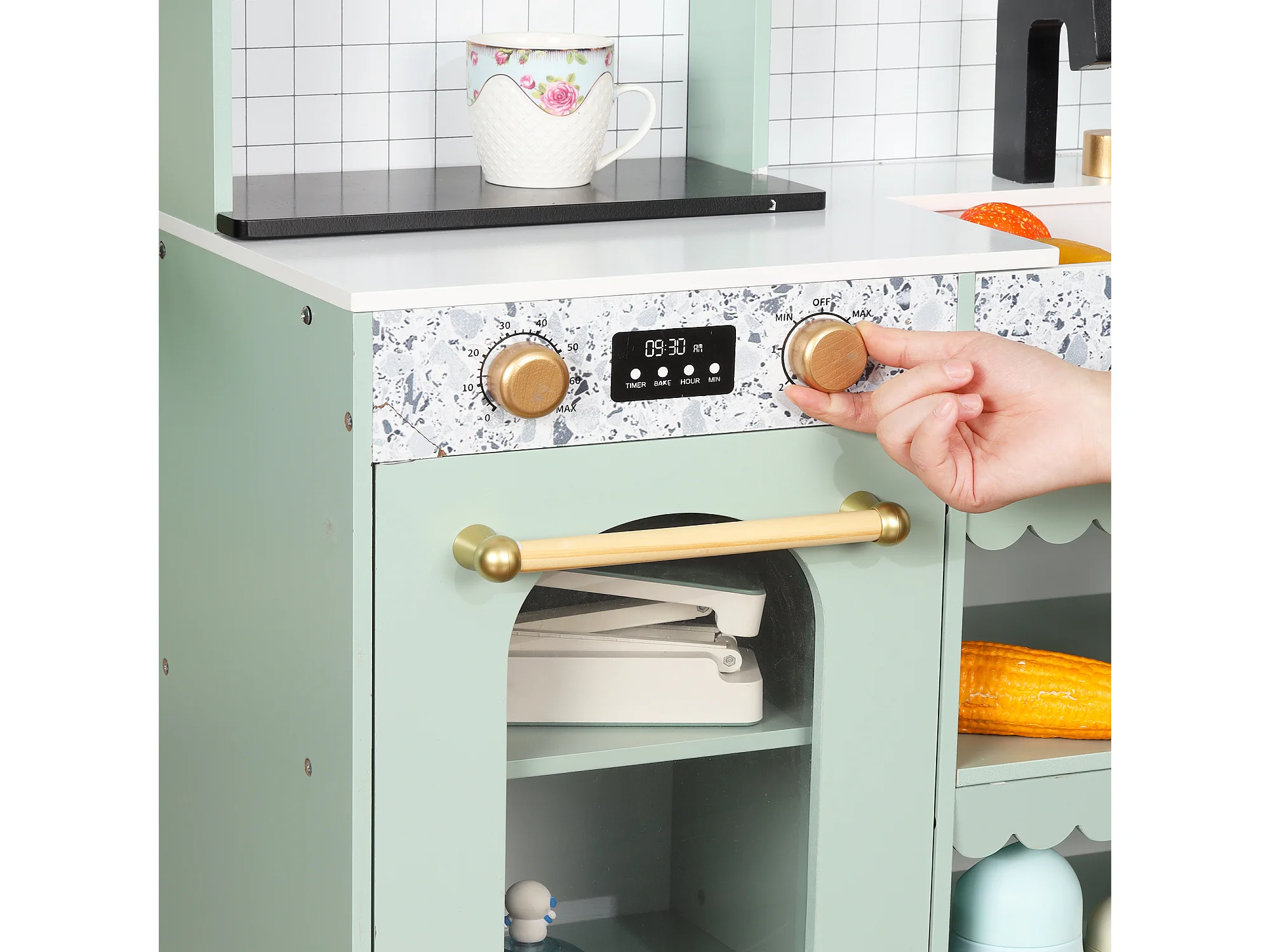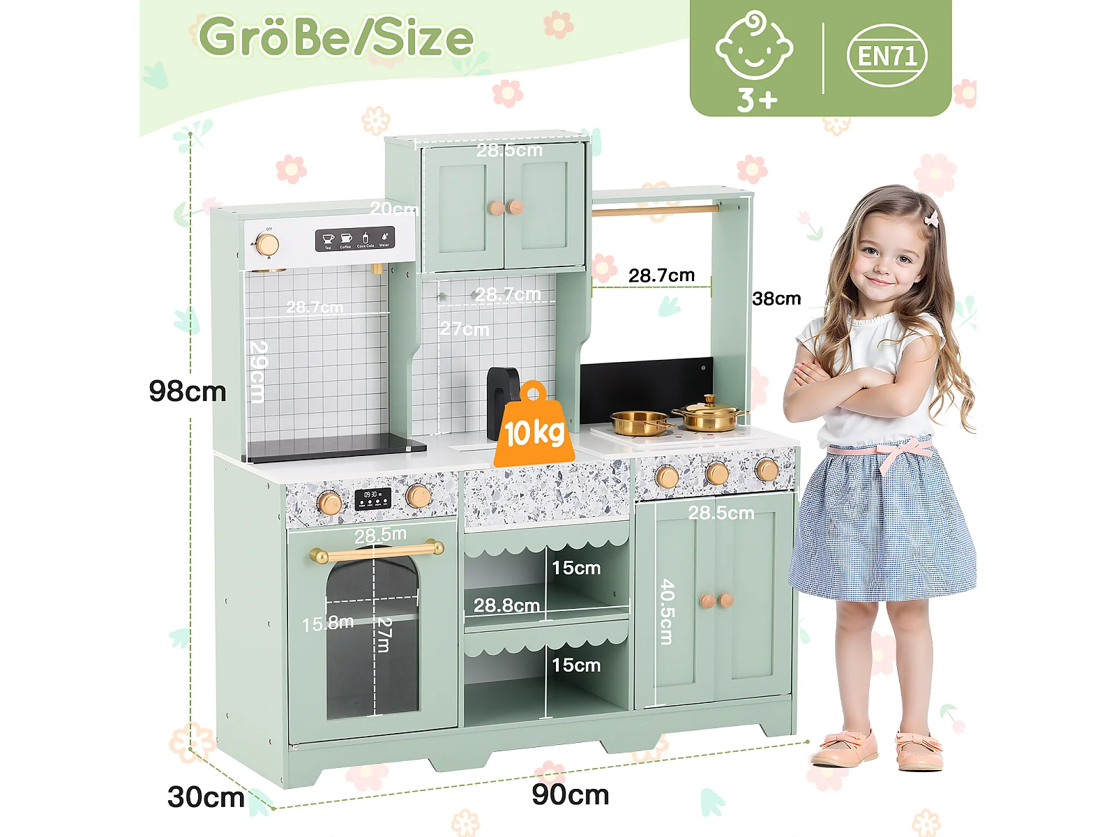 Cuisine Enfants en bois 90x30x98cm - cuisine entièrement équipée - Jouet d’Imitation pour 3 Ans+ (Blanc+Vert)