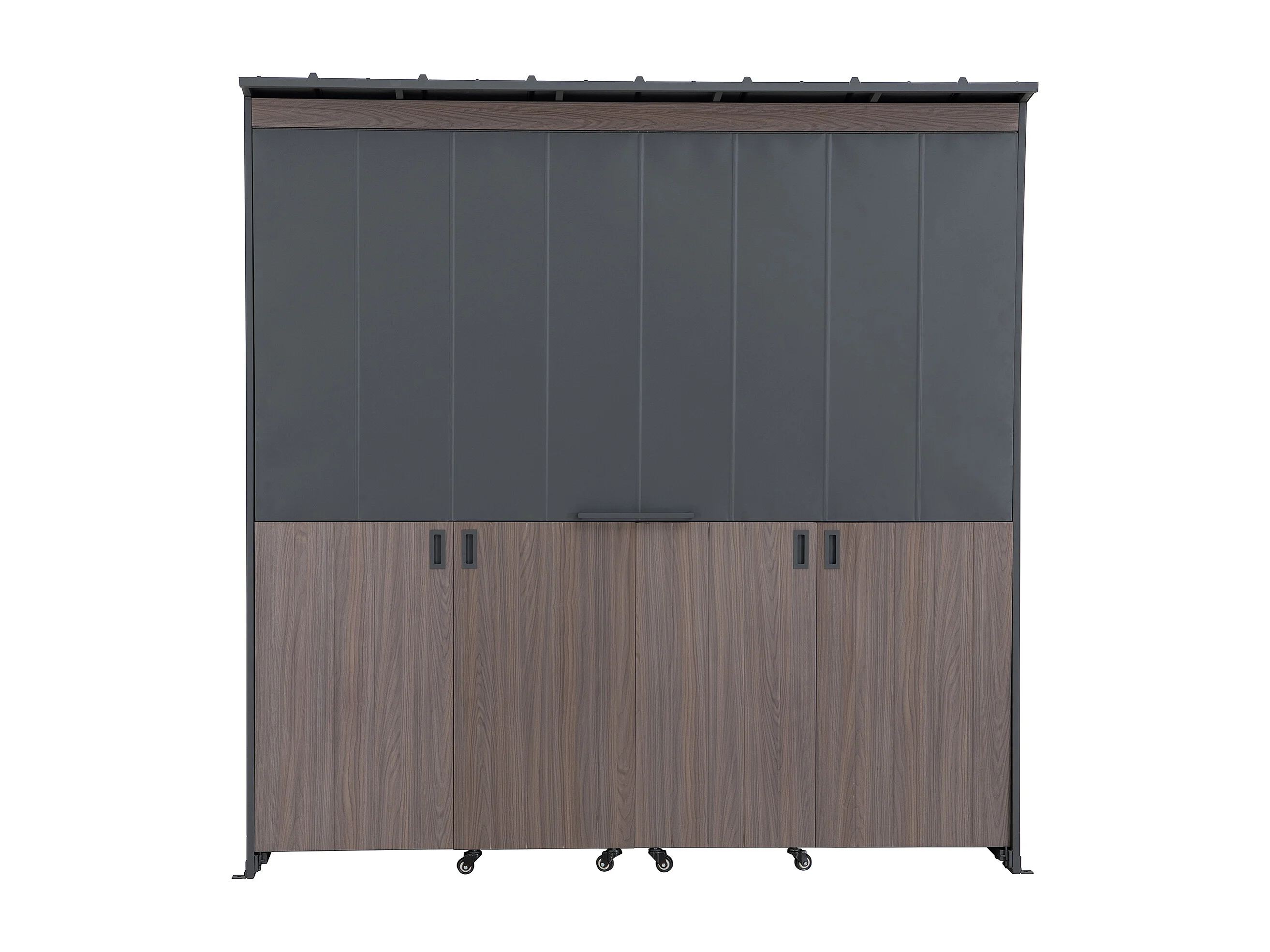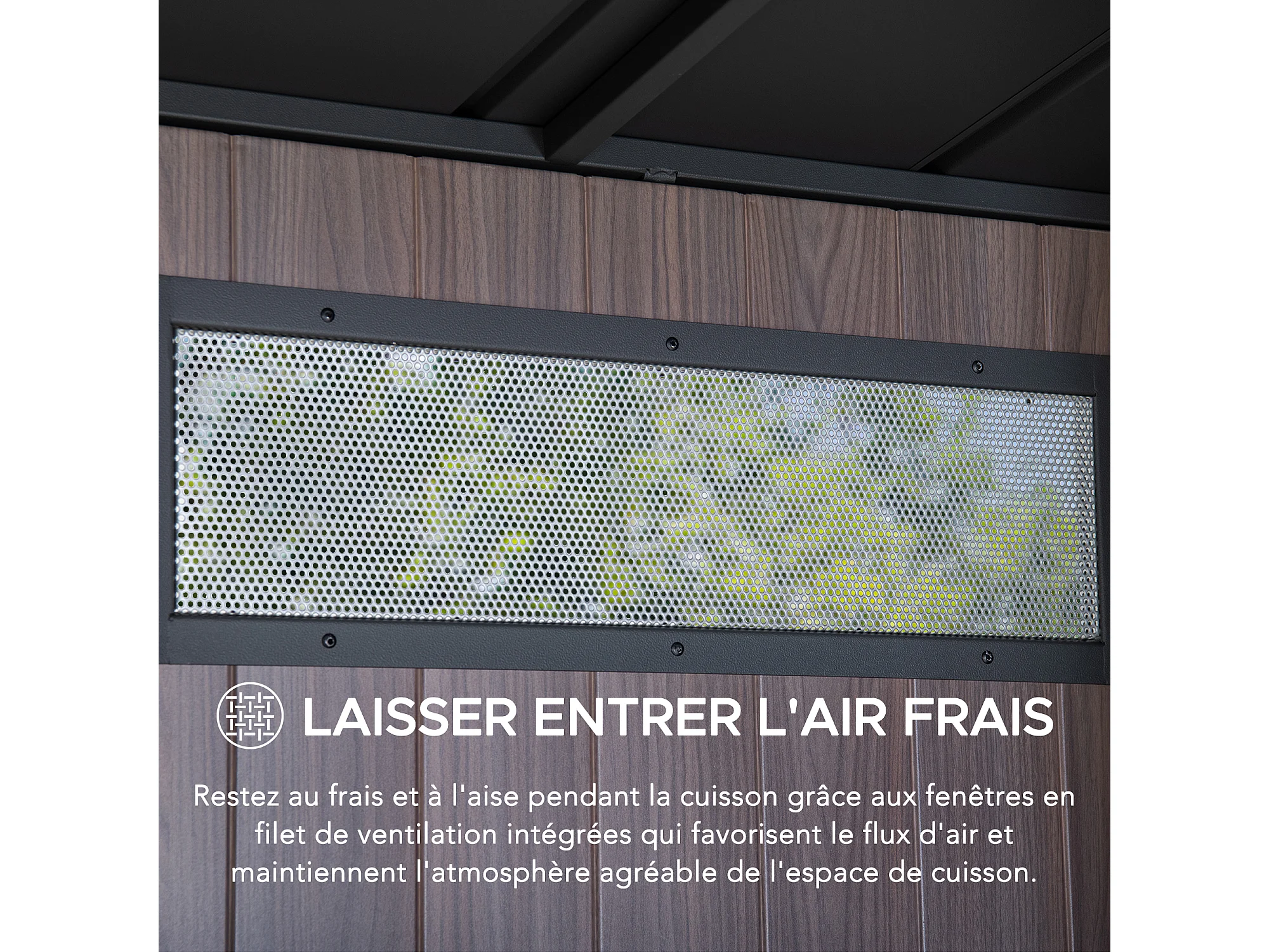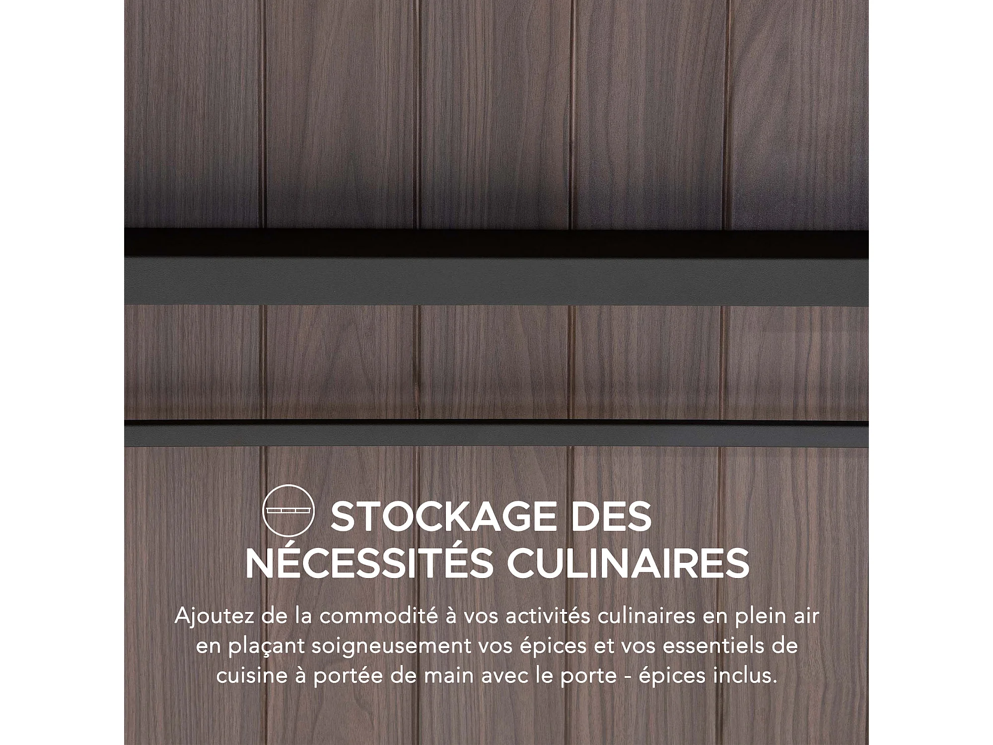 Cuisine extérieure MAMBO de 220 cm x 94 cm avec porte relevable et portes coulissantes pliantes.