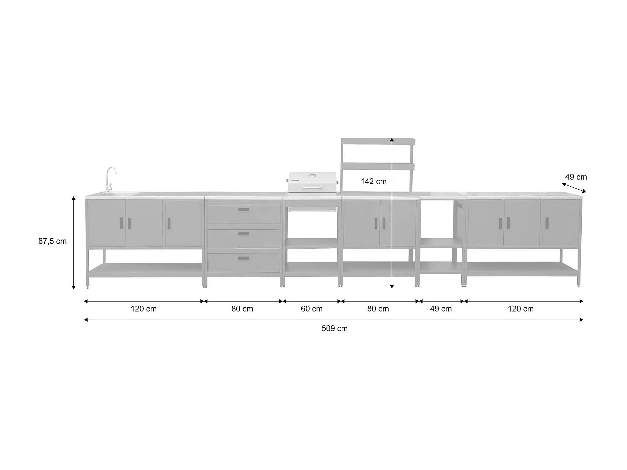 Cuisine extérieure Naxos 5 modules avec barbecue au charbon acier inoxydable vert