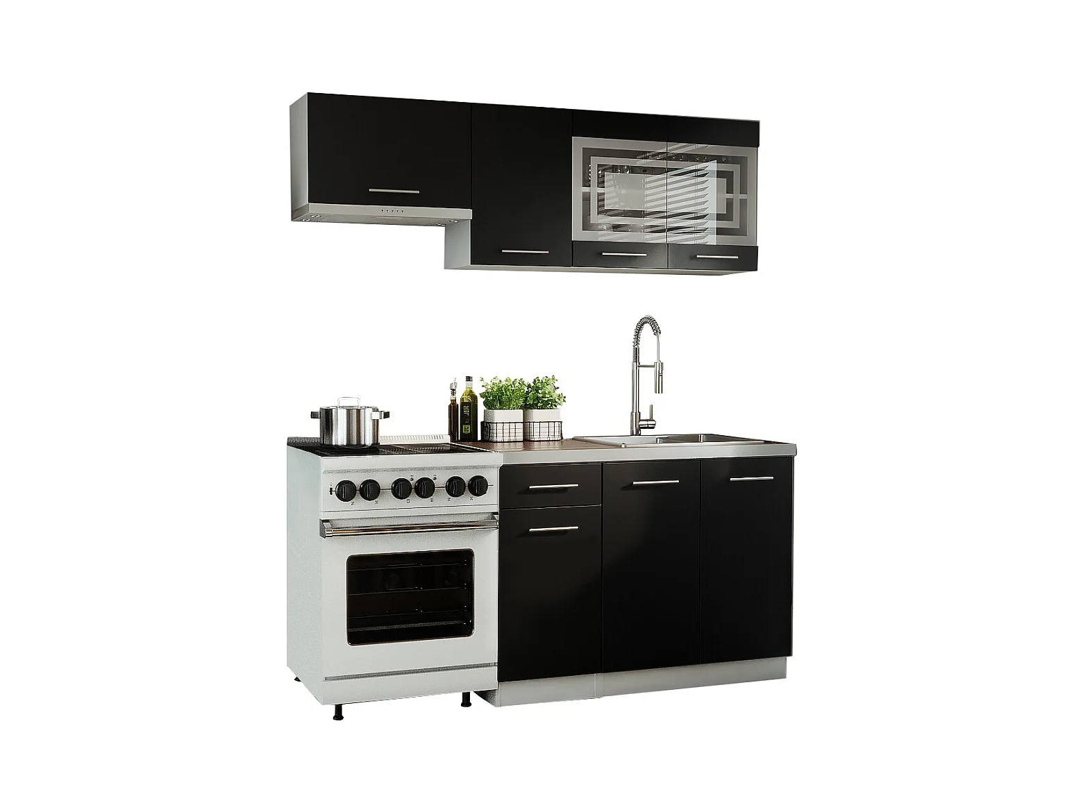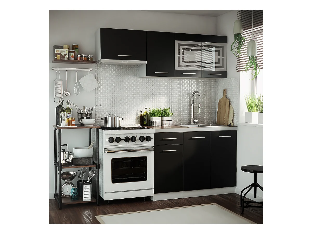 Cuisine GIOVANNA 5 éléments - noir mat 1m80 - portes vitrées à motif