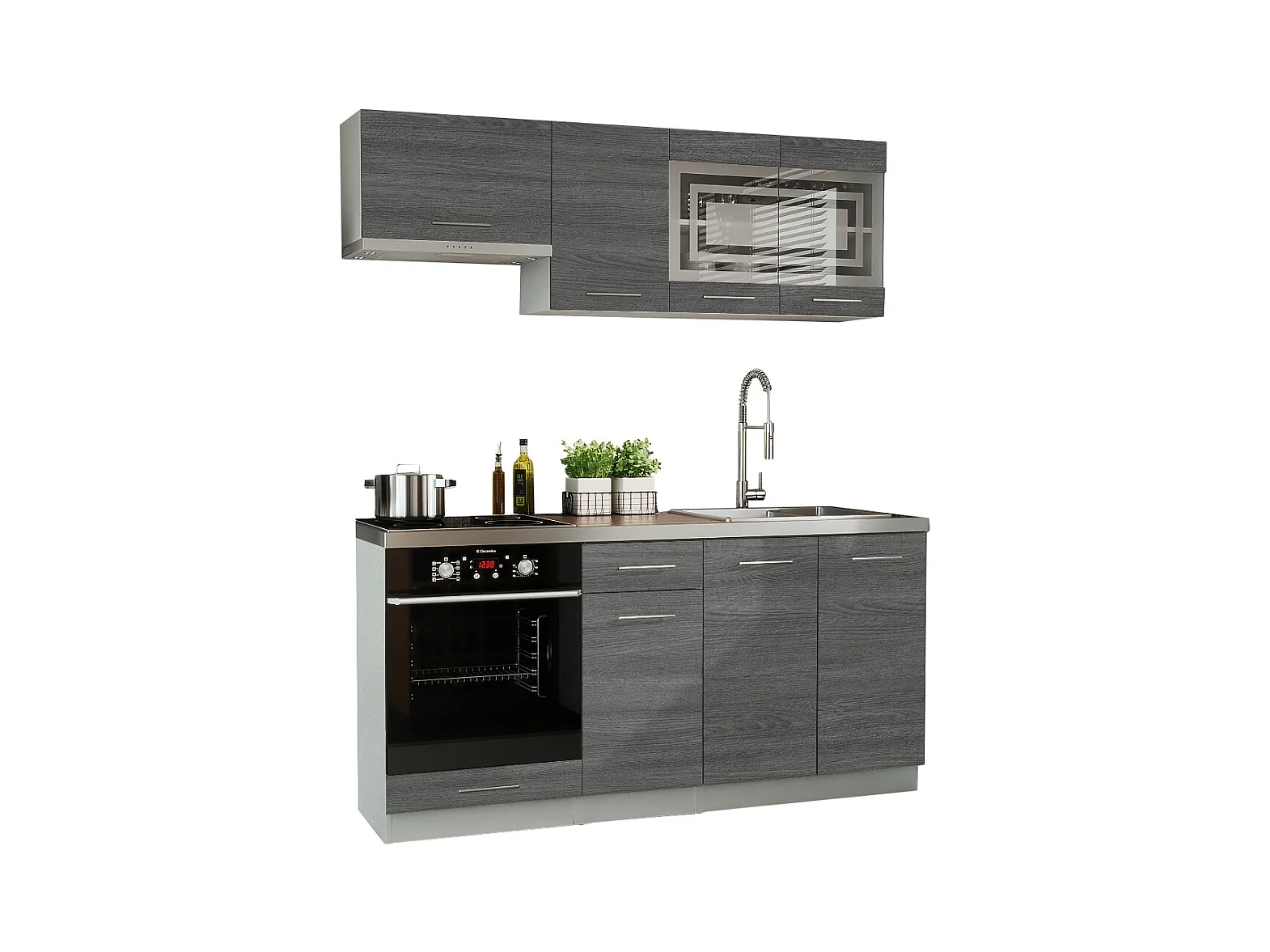 Cuisine GIOVANNA 6 éléments - bois grisé 1m80 portes vitrées four encastrable