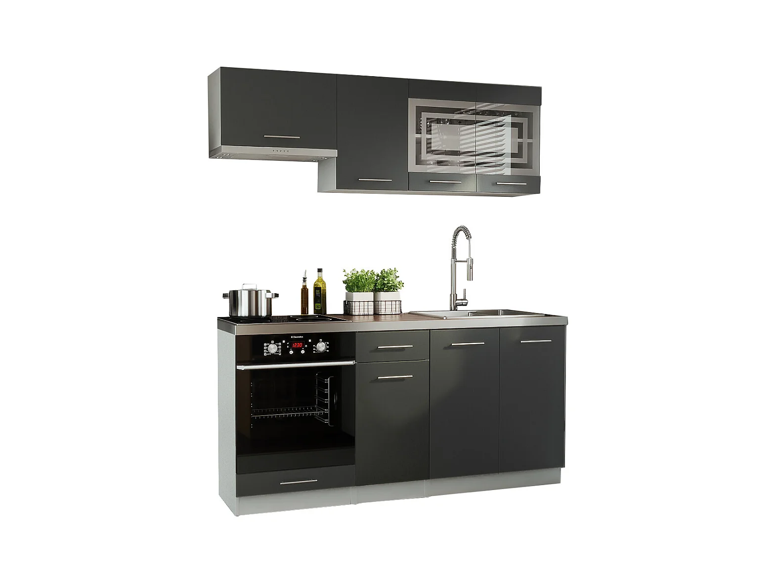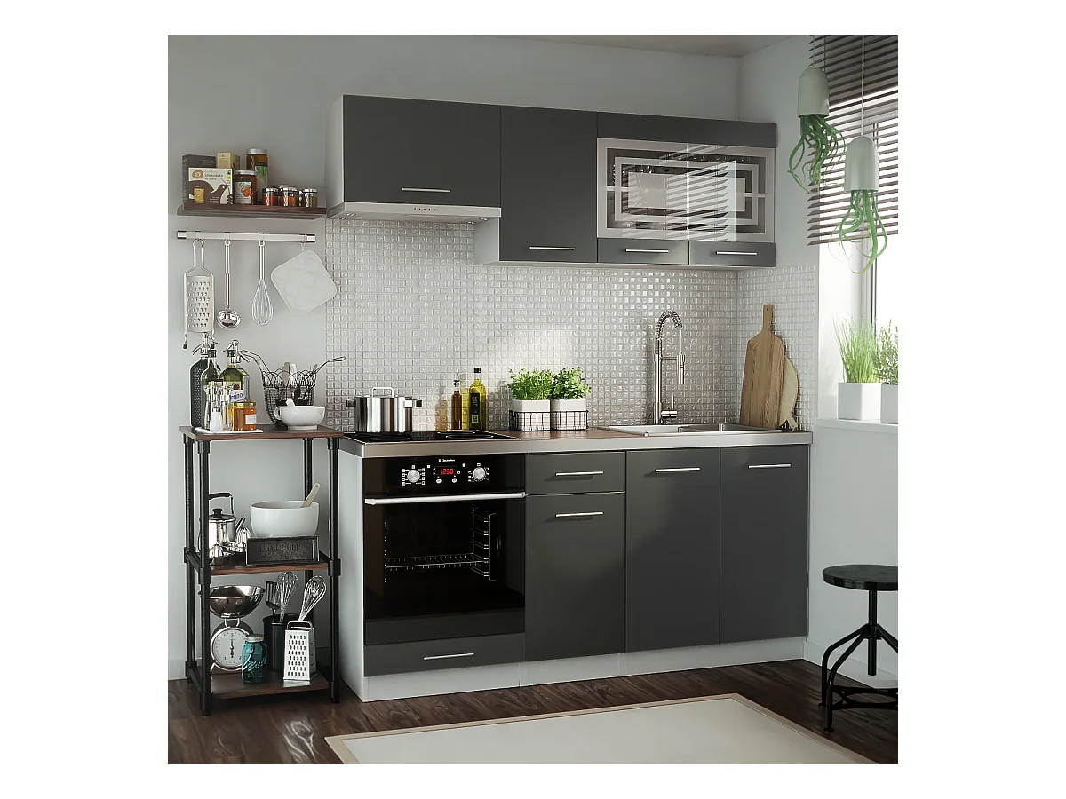 Cuisine GIOVANNA 6 éléments - graphite mat 1m80 portes vitrées four encastrable