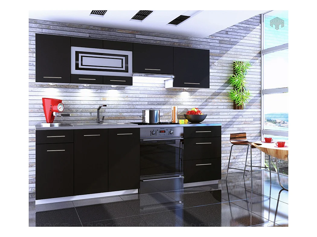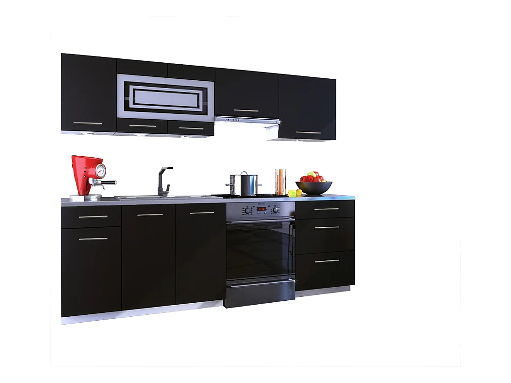 Cuisine GIOVANNA 7 éléments - noir mat 2m40 - grand casserolier