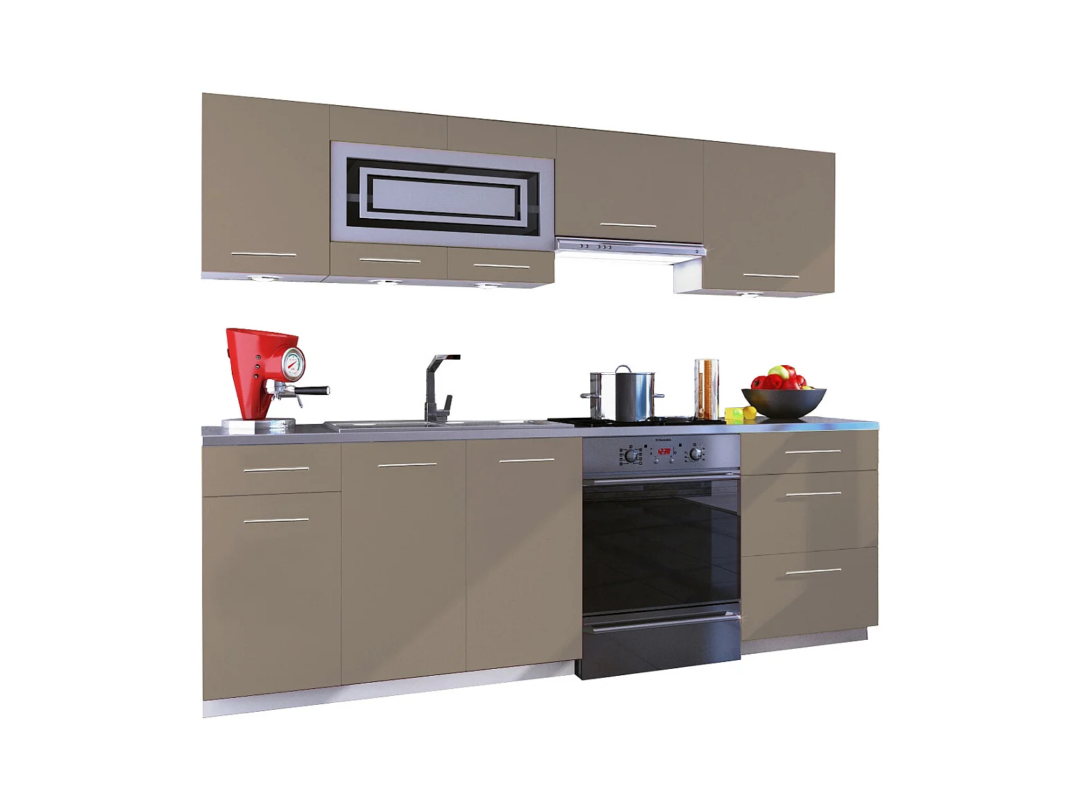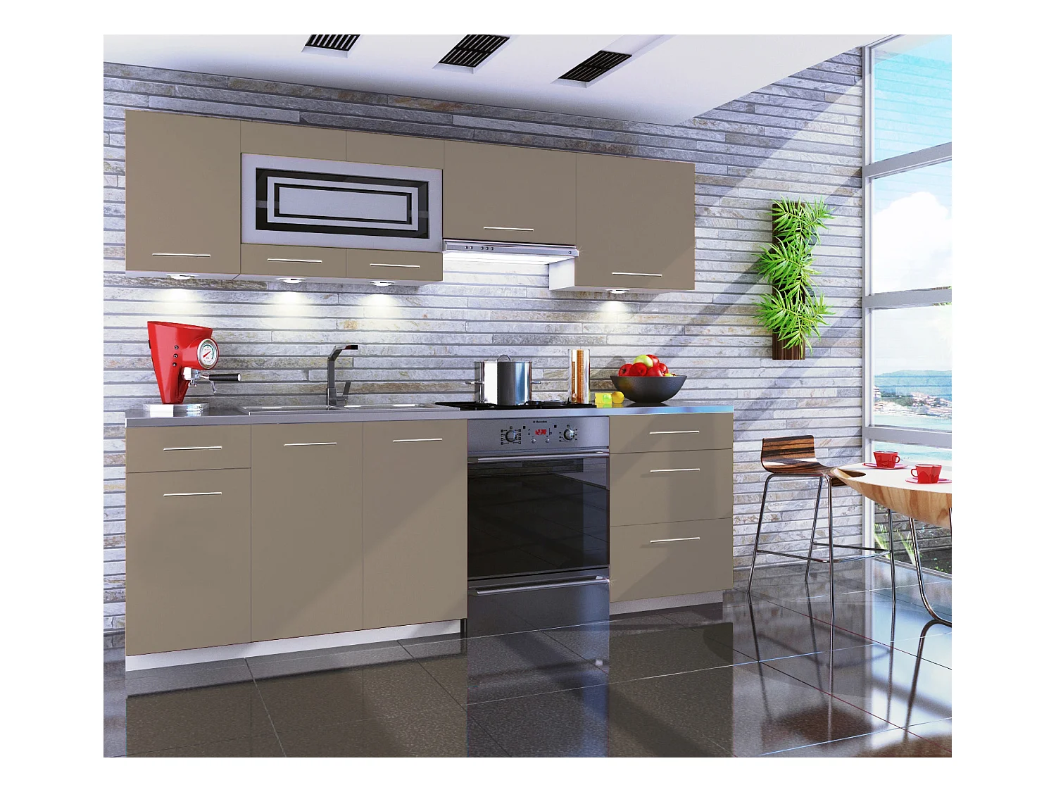 Cuisine GIOVANNA 7 éléments - taupe mat 2m40 - grand casserolier