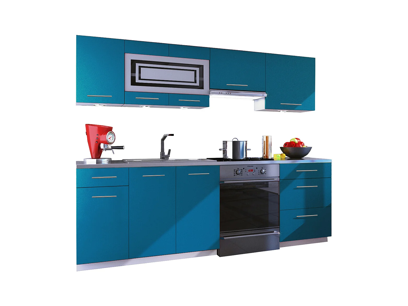 Cuisine GIOVANNA 7 éléments - turquoise mat 2m40 - grand casserolier