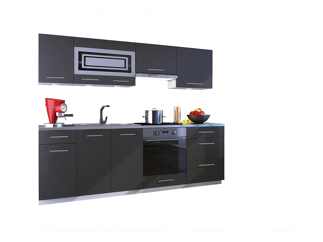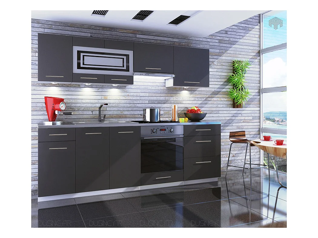 Cuisine GIOVANNA 8 éléments - graphite mat 2m40 casserolier four encastrable