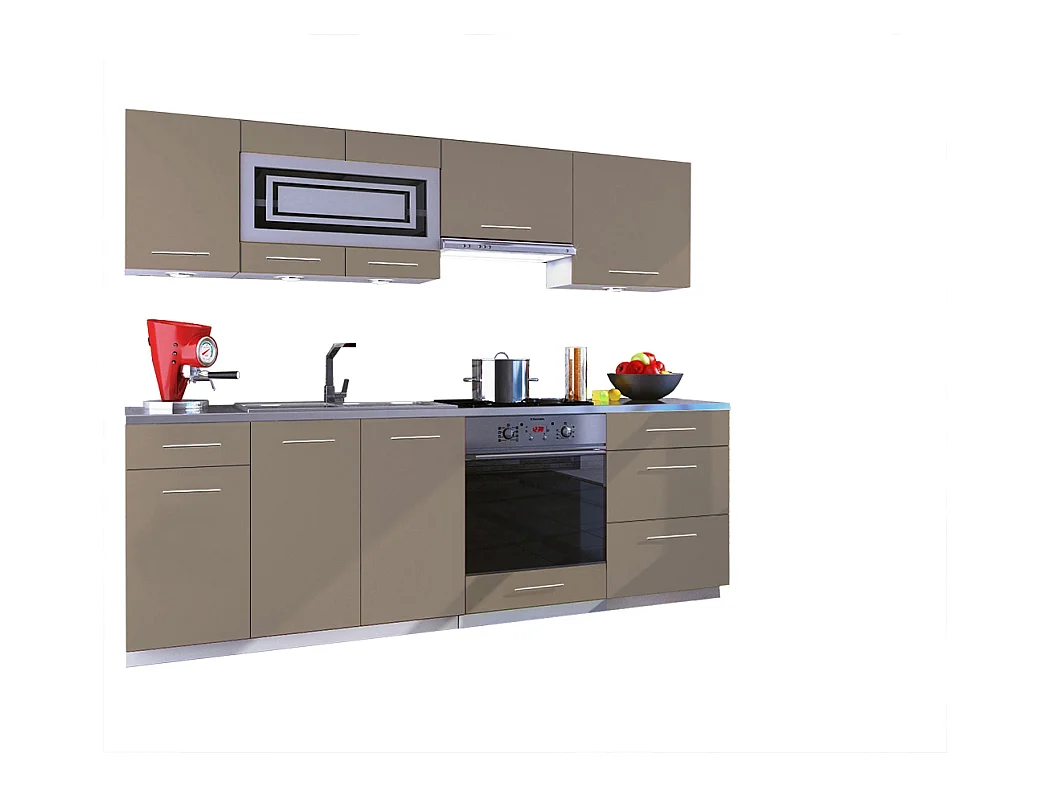Cuisine GIOVANNA 8 éléments - taupe mat 2m40 casserolier four encastrable