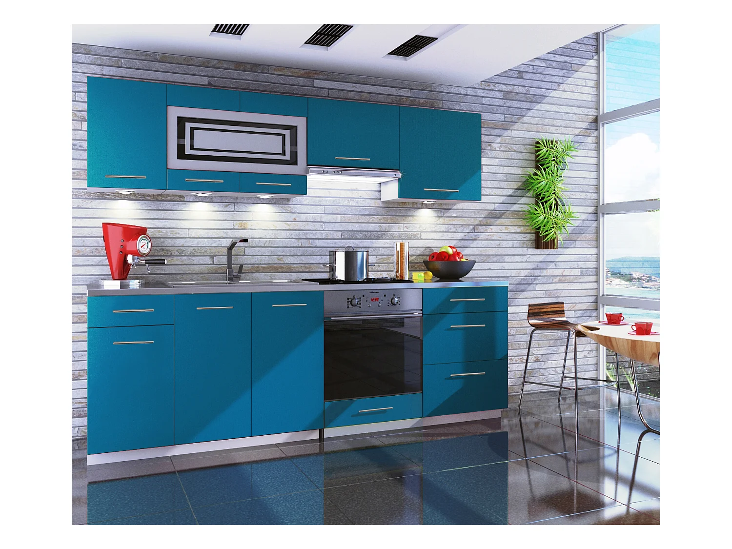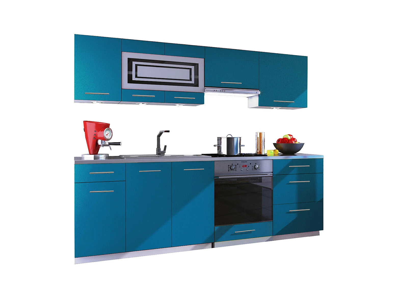 Cuisine GIOVANNA 8 éléments - turquoise mat 2m40 casserolier four encastrable