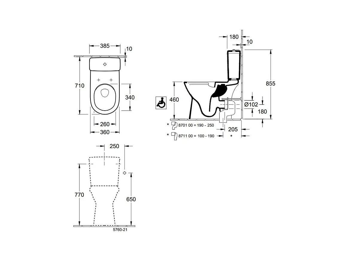 Cuvette VILLEROY ET BOCH sans bride ViCare + Réservoir de chasse + Abattant