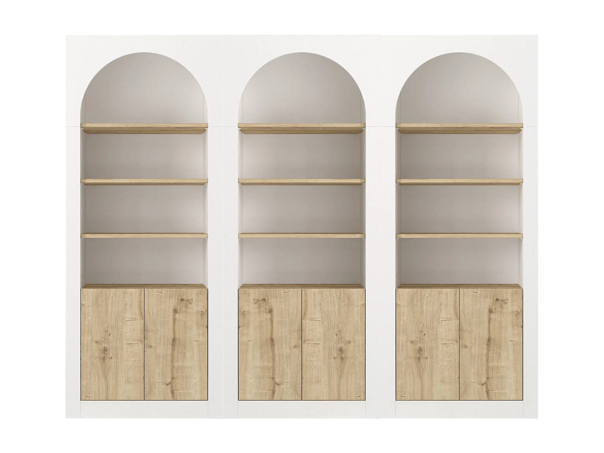 Lot de 3 bibliothèques avec 4 niches et 2 portes - Blanc et naturel clair - CYMORA