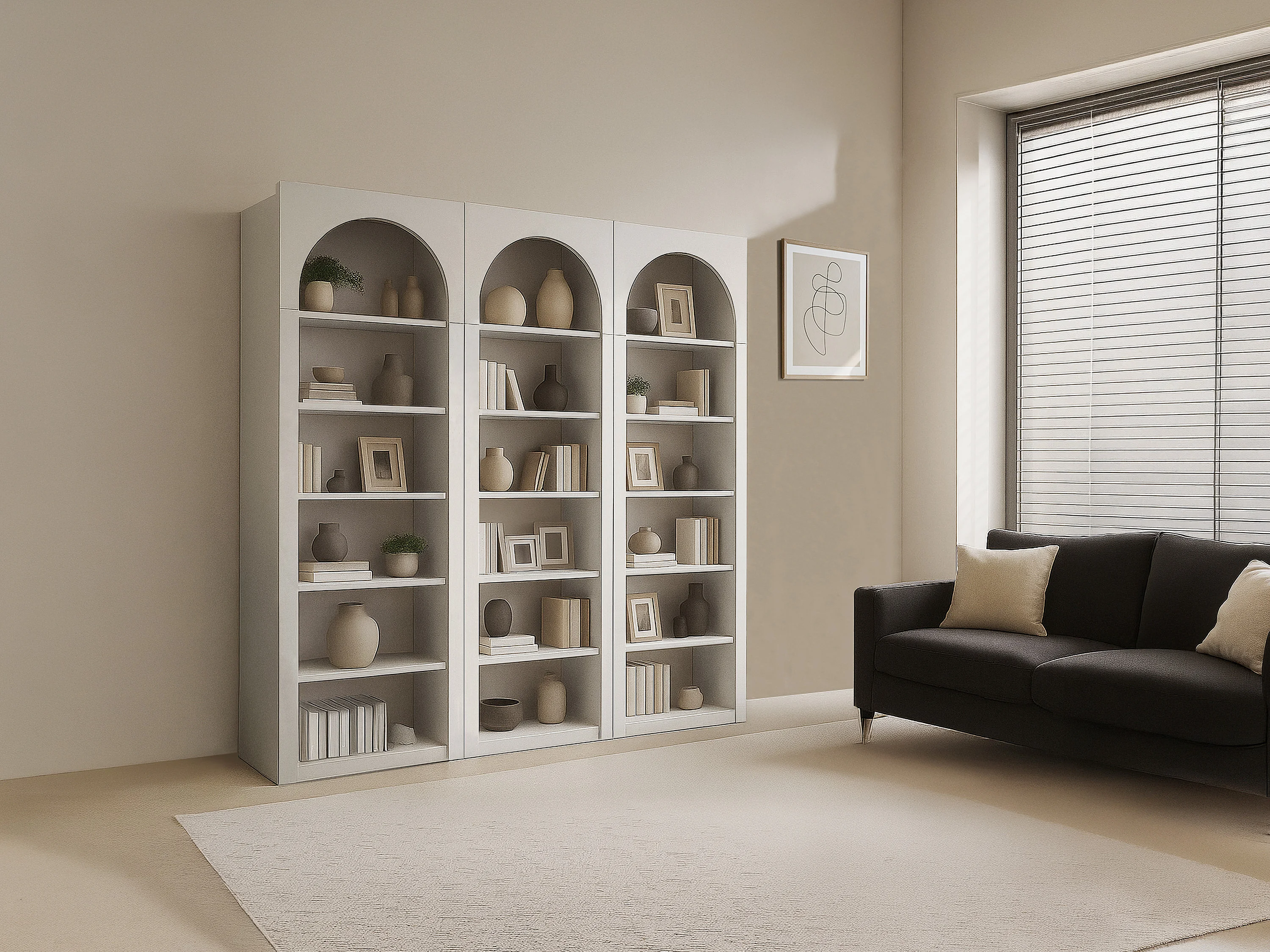 Lot de 3 bibliothèques avec 6 niches - Beige - CYMORA