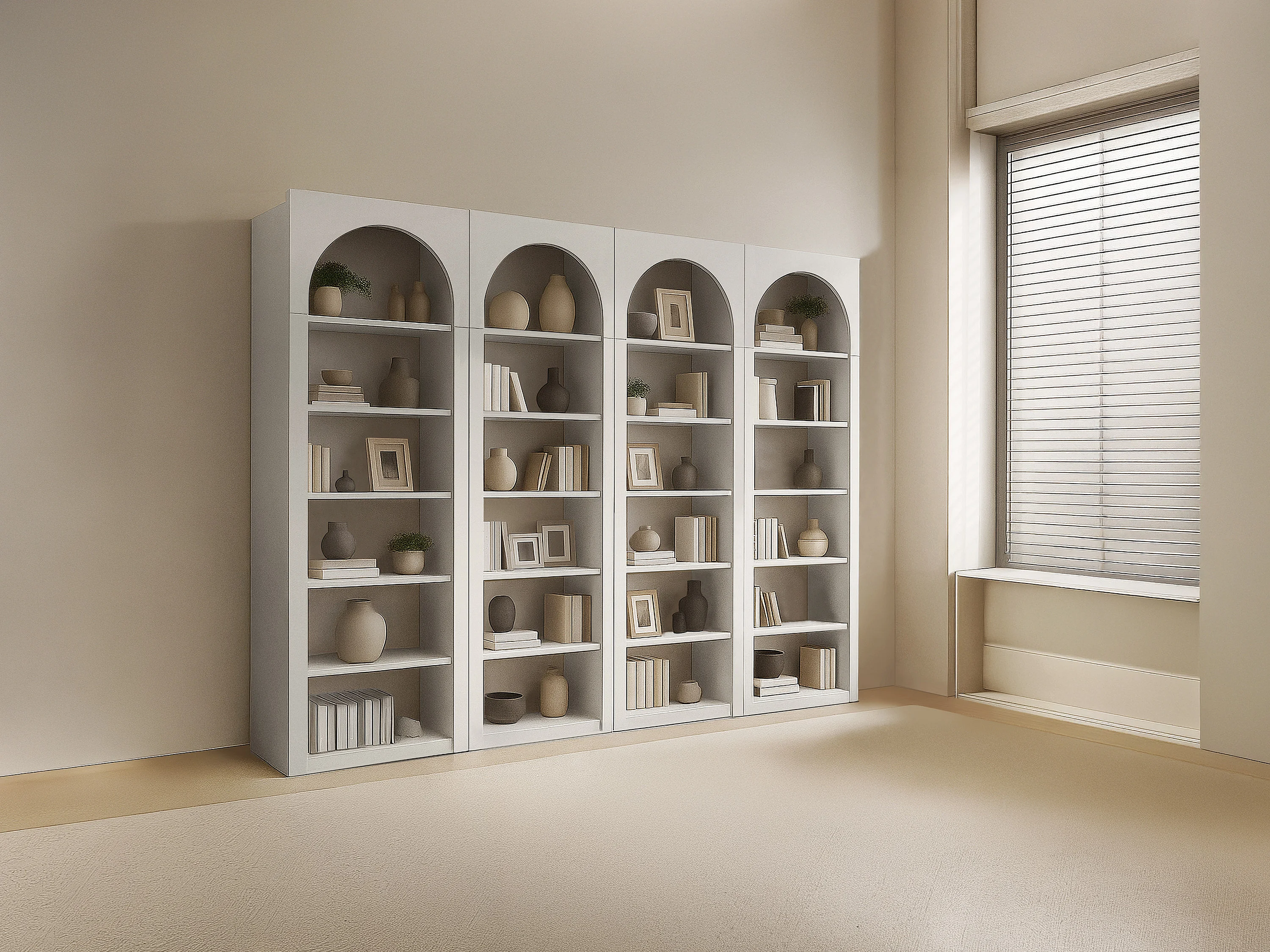 Lot de 4 bibliothèques avec 6 niches - Beige - CYMORA