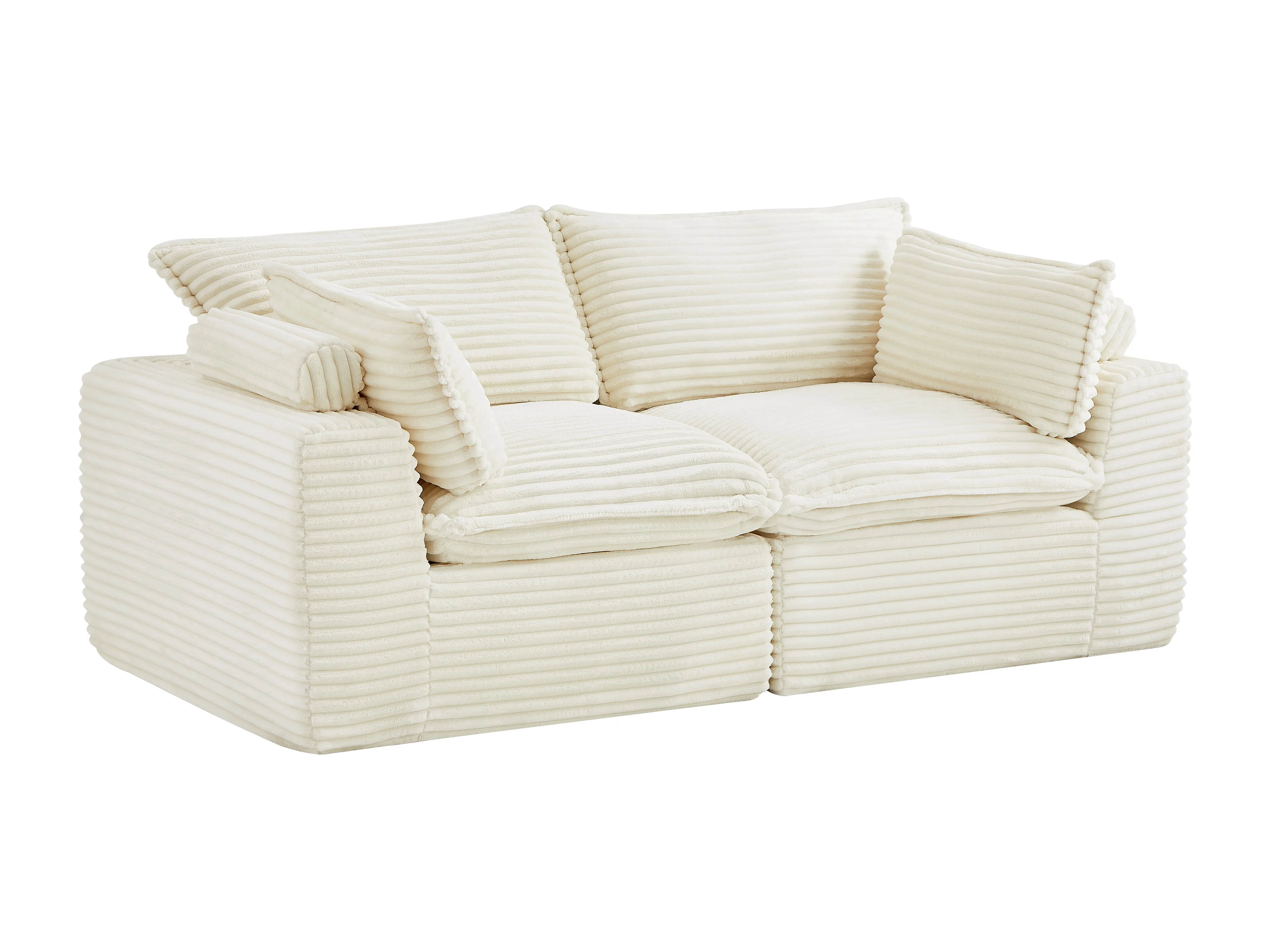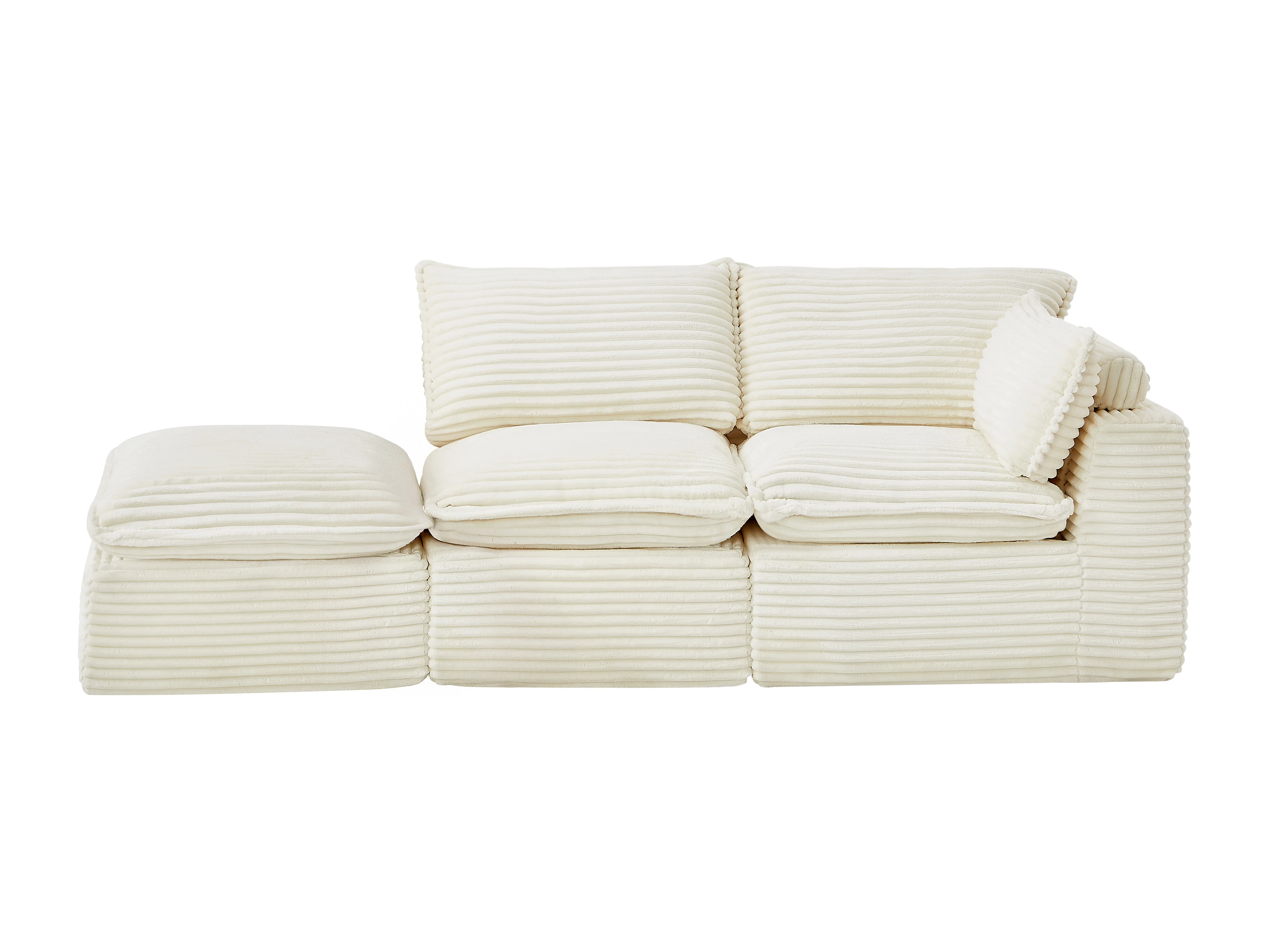 Canapé d'angle modulable avec pouf en velours côtelé grosses côtes beige CYROMA