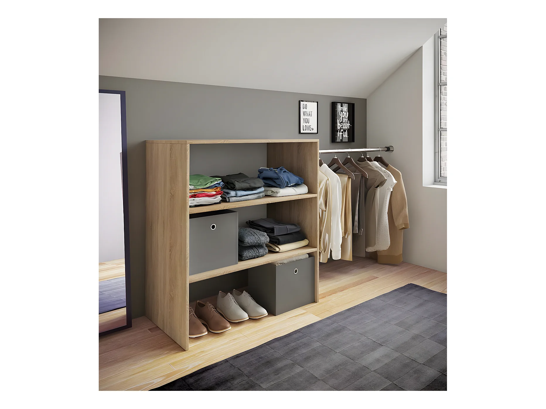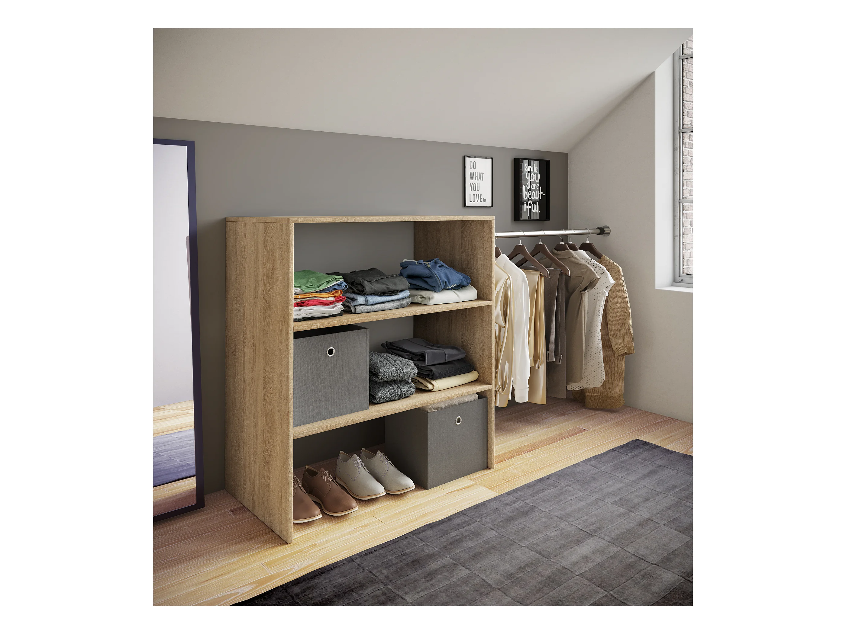 VCM Bois Armoire ouverte dressing penderie pentes de toit étagère Dacho ll (Chêne Sonoma)