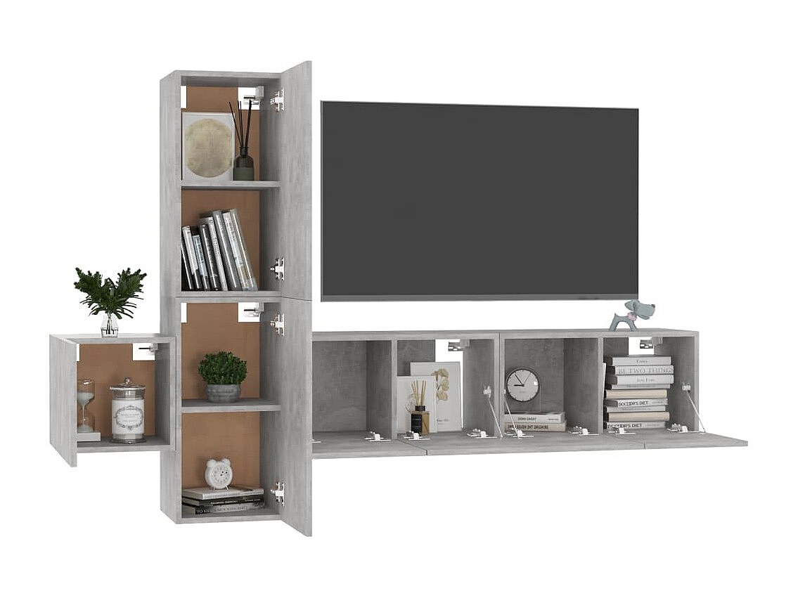 Daingean Ensemble de meubles TV 5 pcs Gris béton Bois d'ingénierie