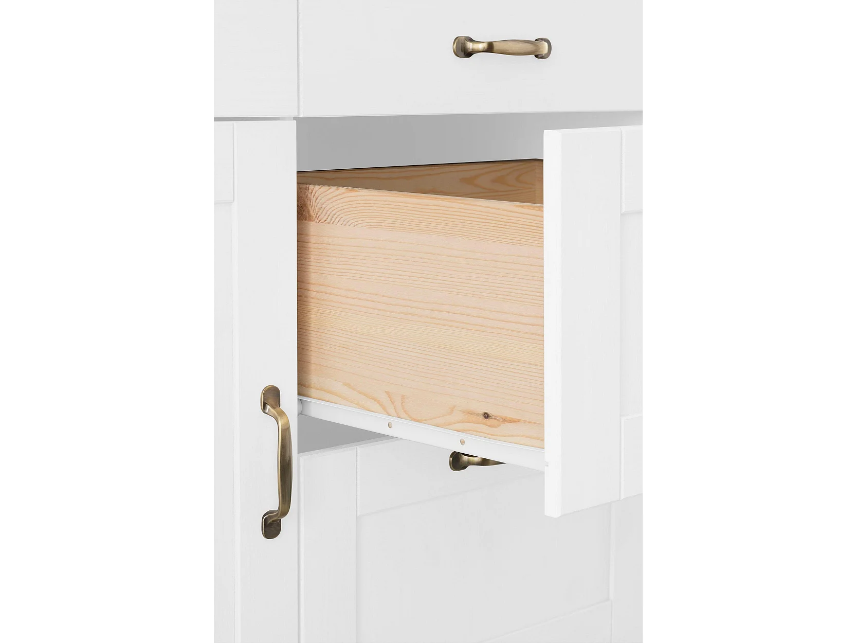 Dalby | Meuble de cuisine en pin blanc avec une porte et quatre tiroirs