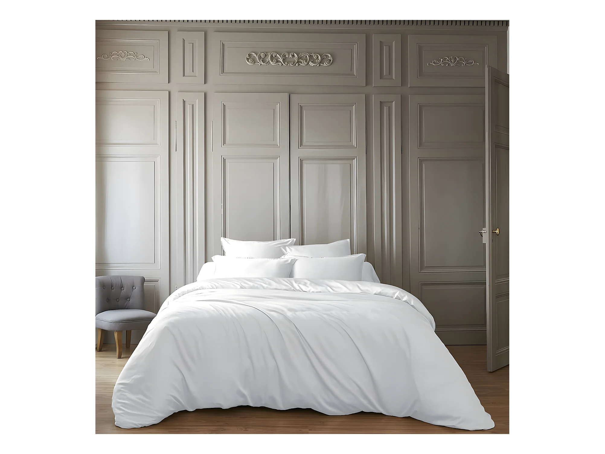 Parure de lit 2 personnes en coton 57 fils imprimé blanc 260x240cm