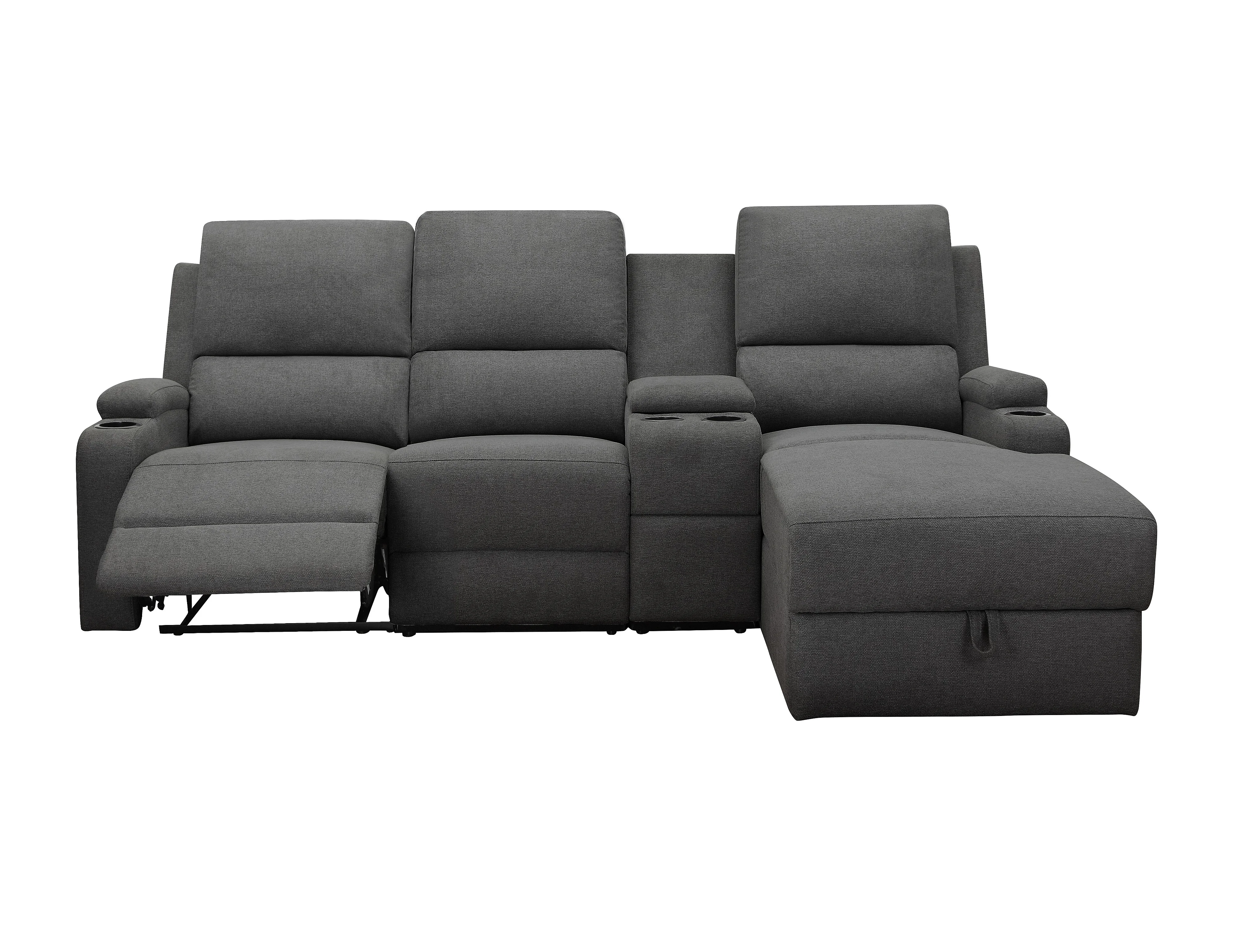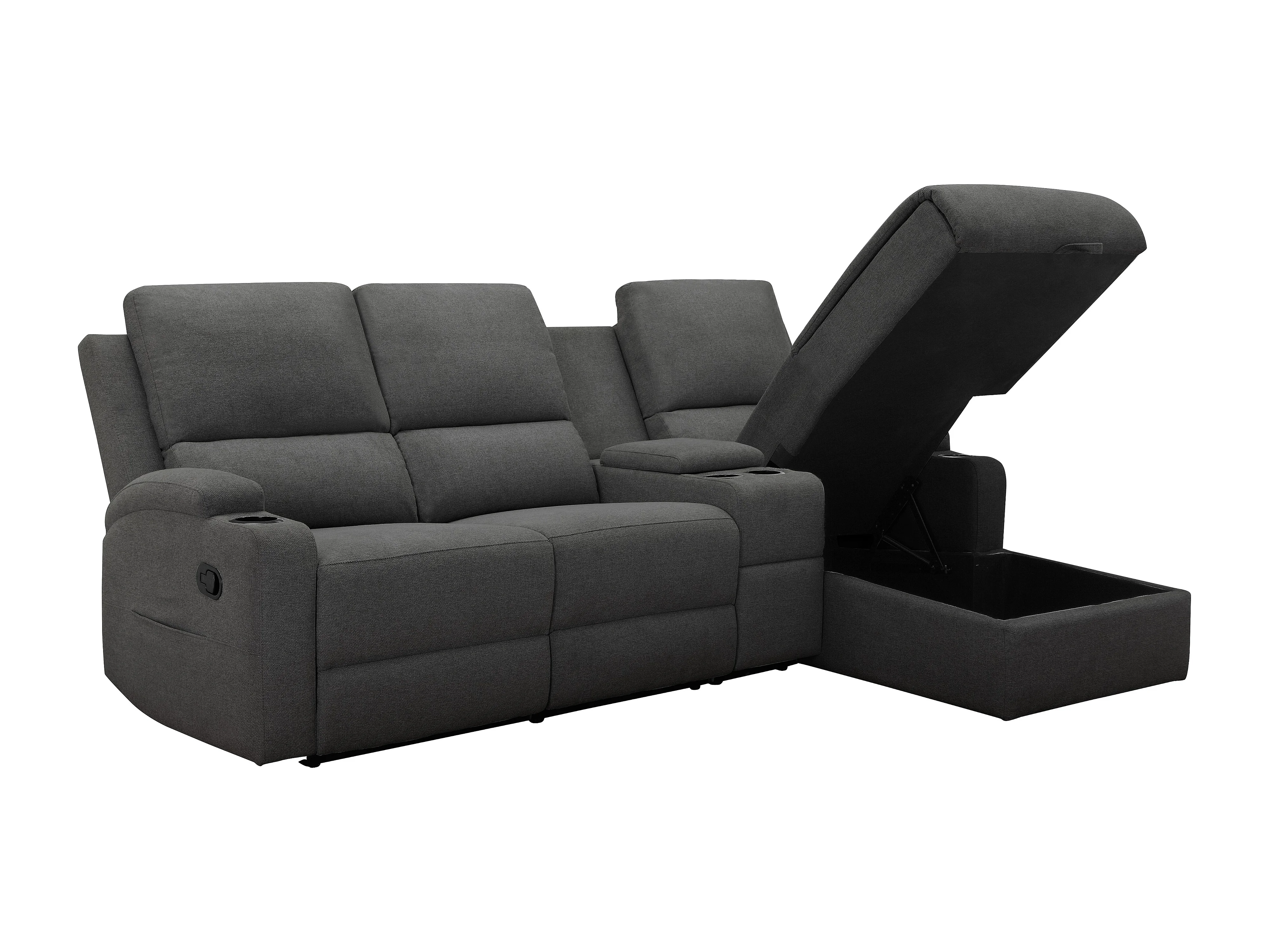 DALLAS | Canapé d’angle 3 places avec rangement en tissu anthracite
