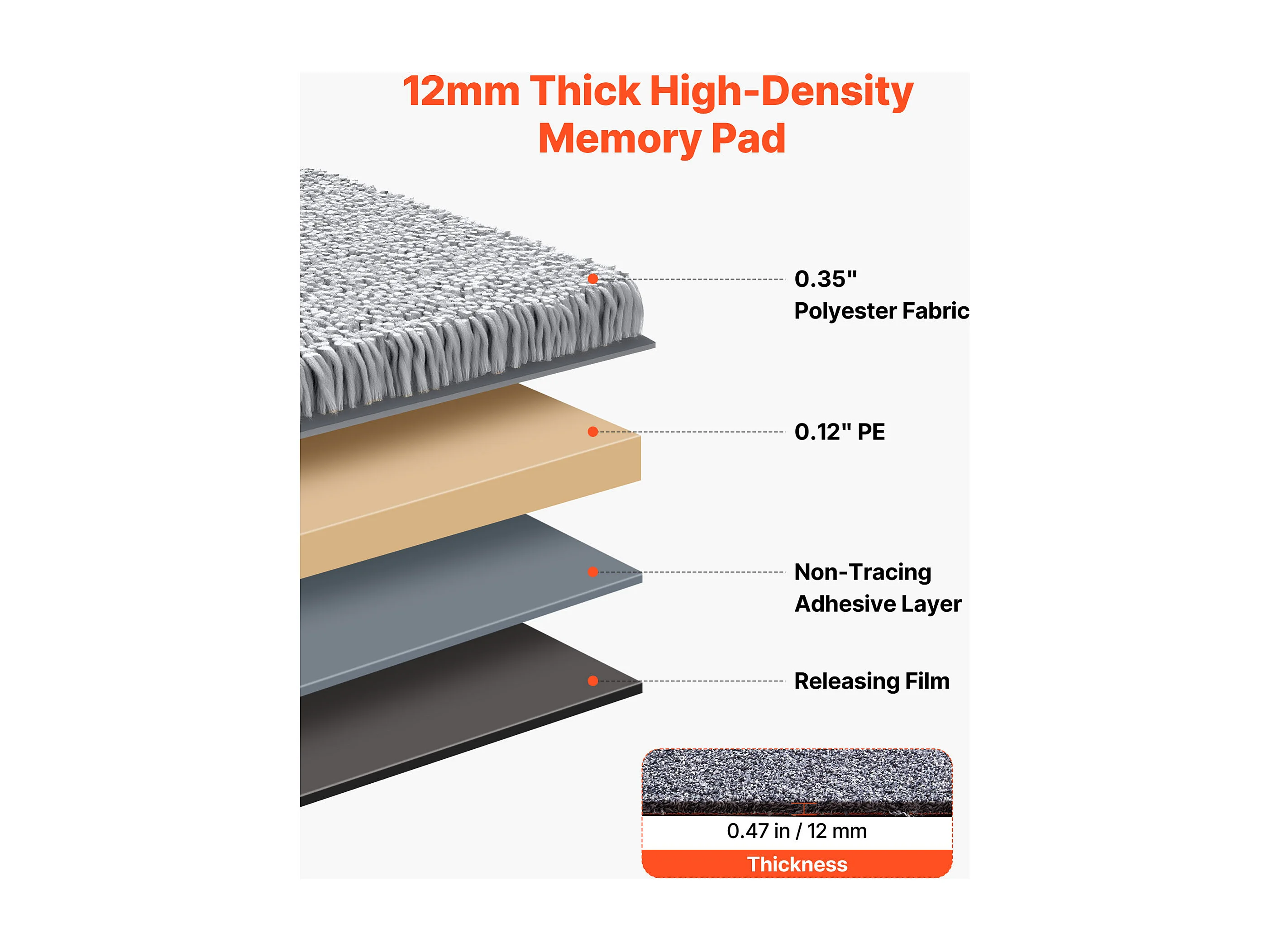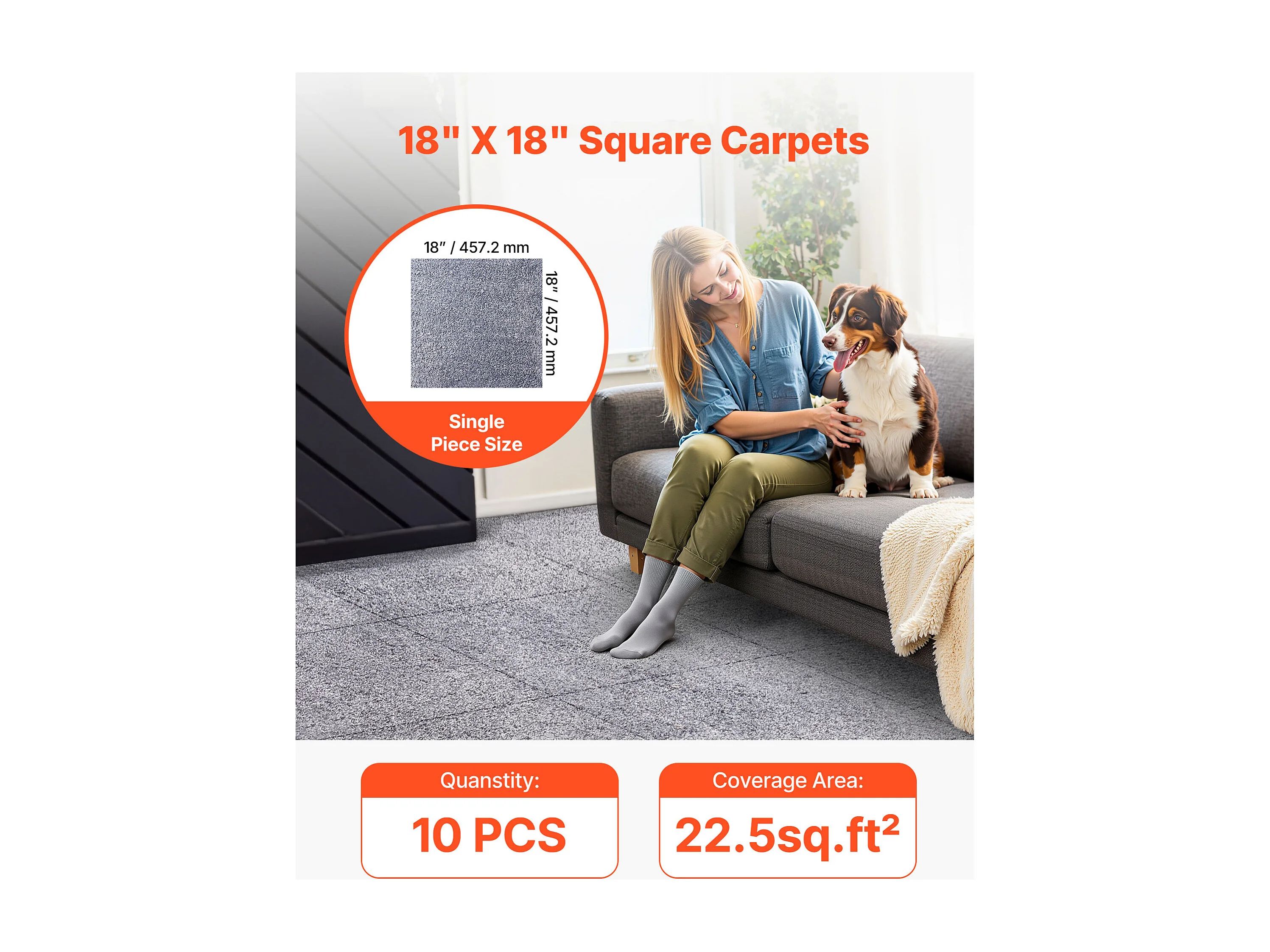 Dalle de Moquette Autocollante SucceBuy, 45,7 x 45,7 cm, Lot de 10, Couverture 2 ㎡, Épaisseur 12 mm, à Poils Ras, Revêtement de Sol Doux Modulaire Carré