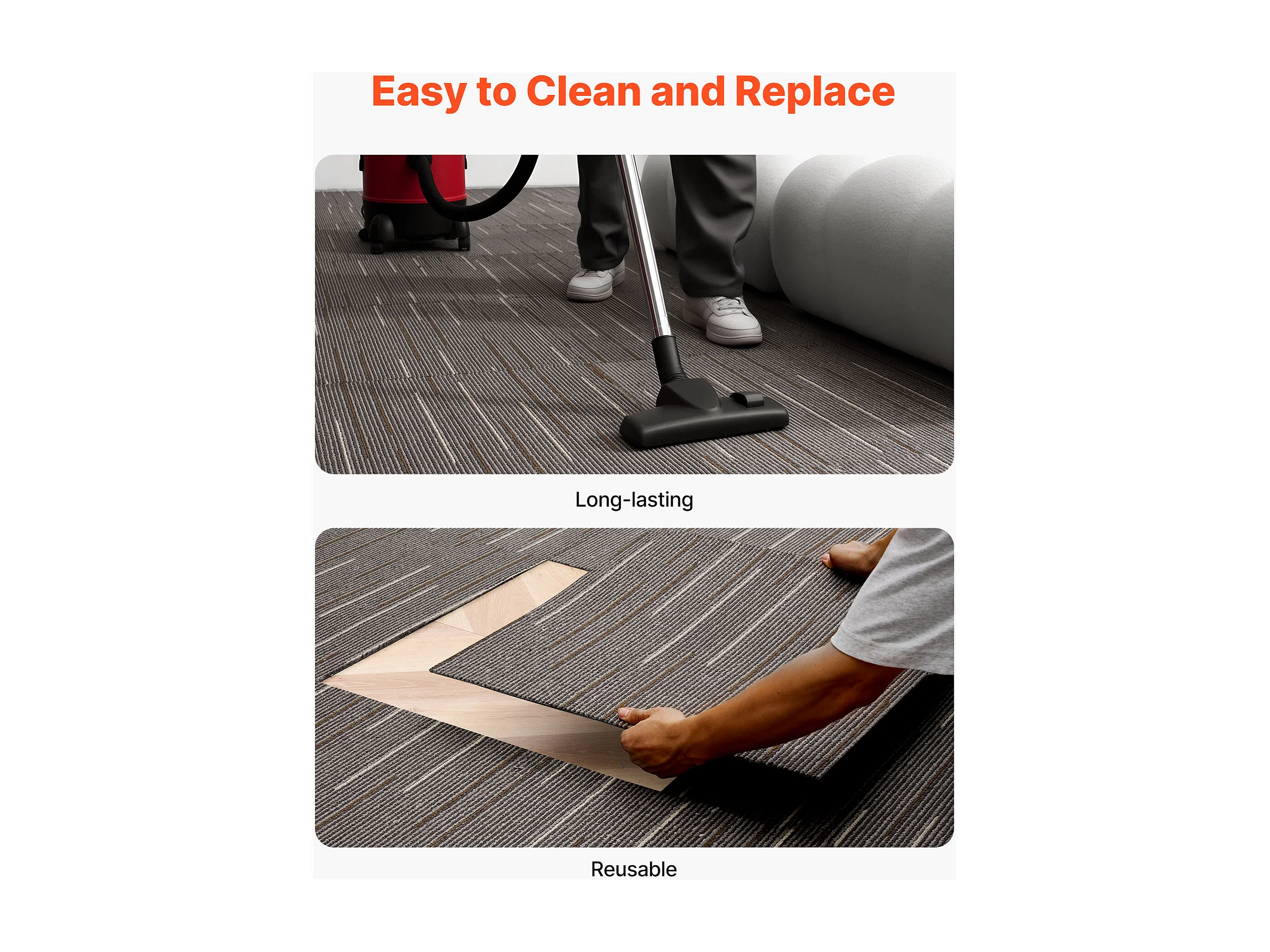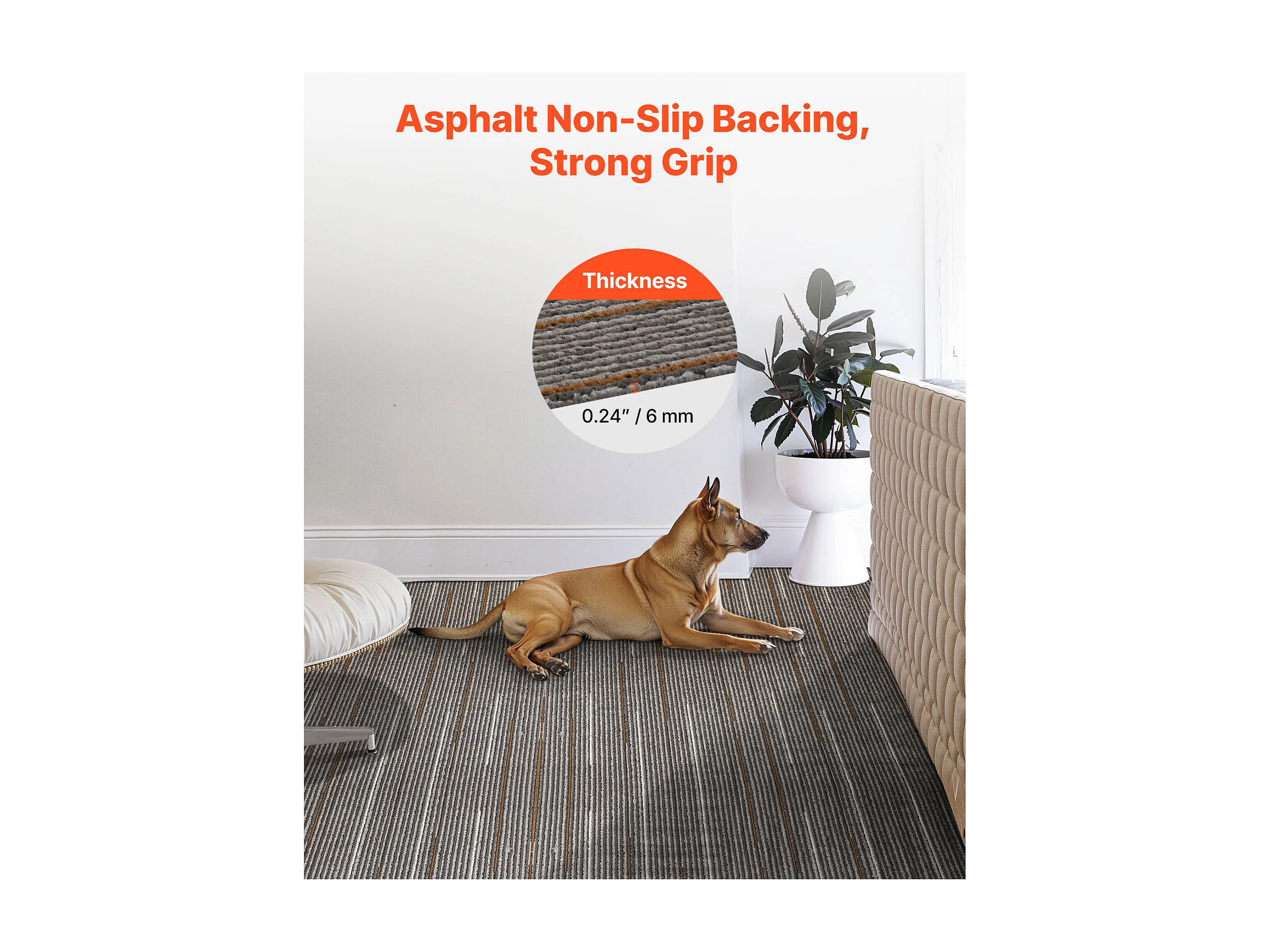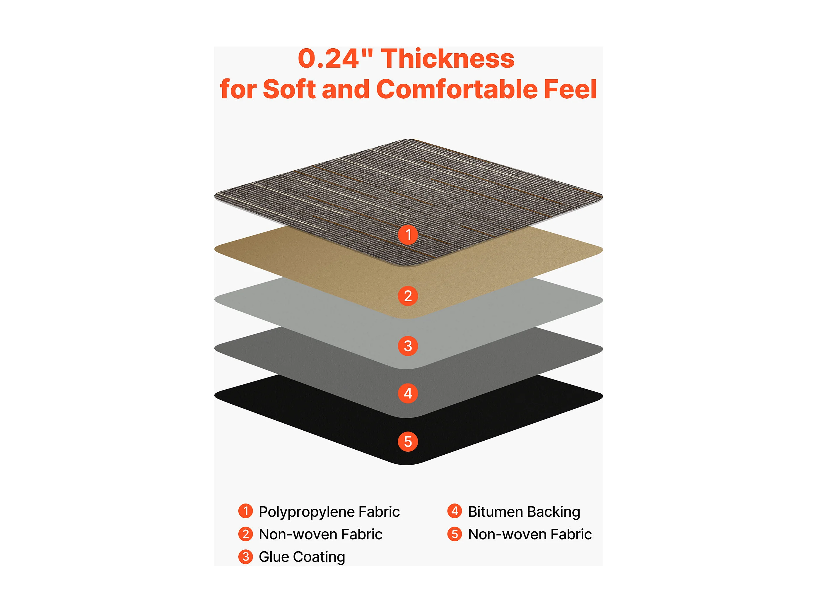 Dalle de Moquette Réutilisable SucceBuy, 61 x 61 cm, Lot de 24, Couverture 8,9 ㎡, Épaisseur 6 mm, à Poils Ras, Revêtement de Sol Doux Modulaire et Carré, Marron
