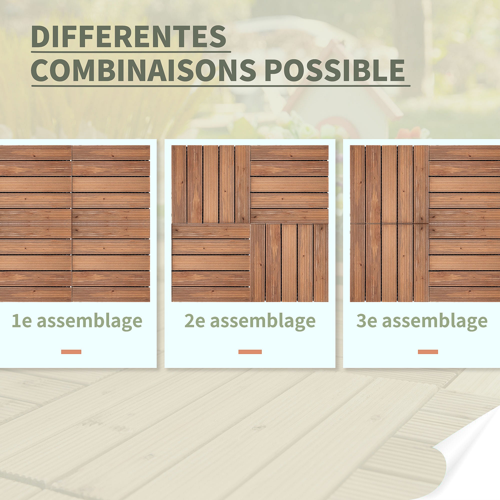 Dalles terrasse - caillebotis - lot de 27 pcs, surface max. 2,5 m²- emboîtables, installation très simple - carreaux bois sapin teinté brun