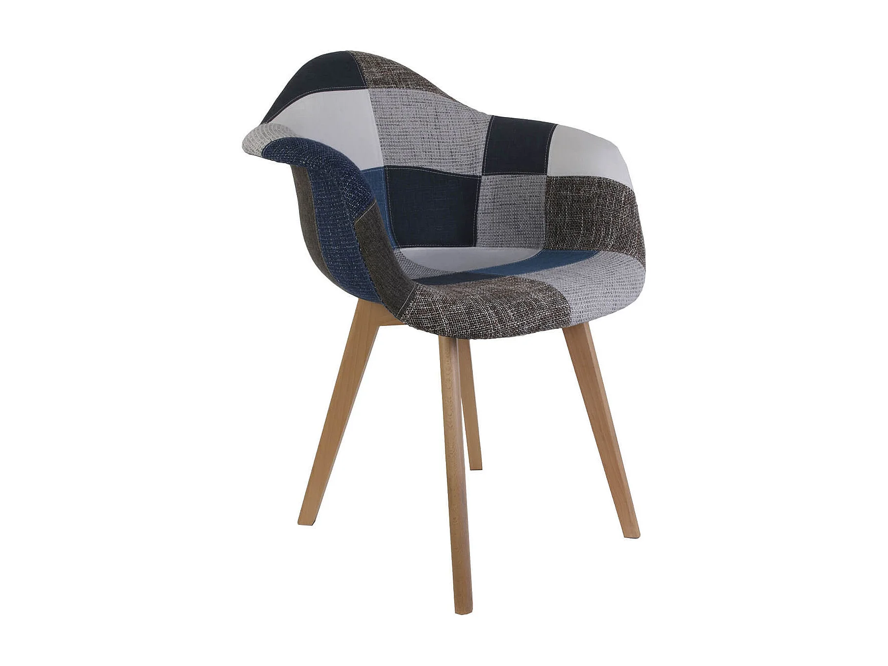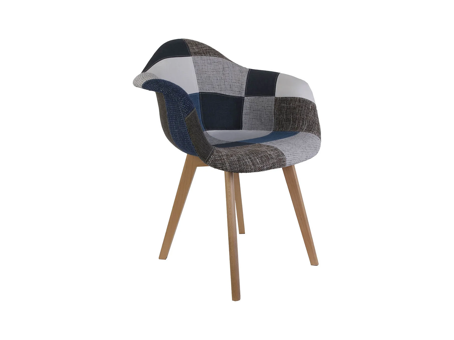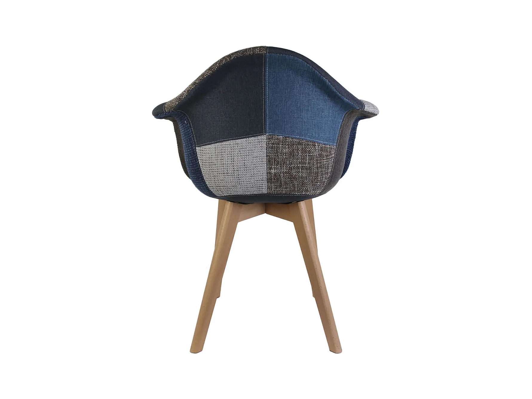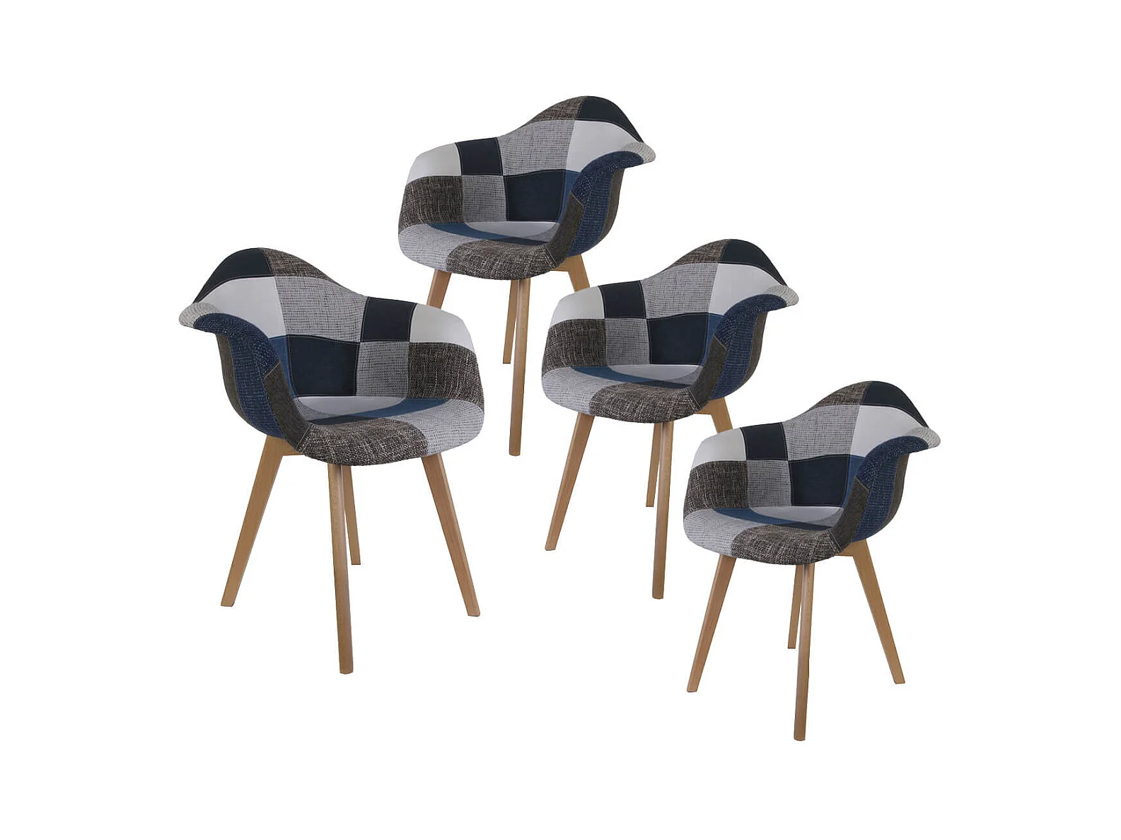 DAMAS - Lot de 4 Fauteuils Patchwork Bleu et Gris
