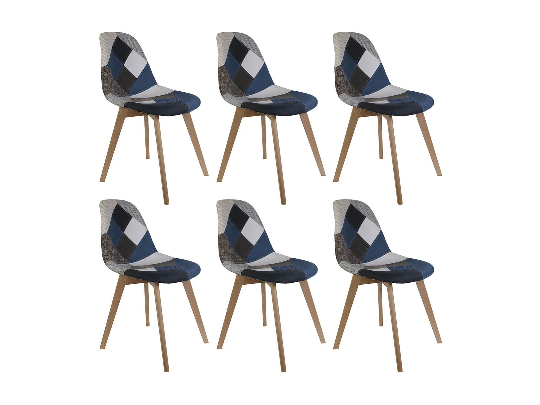 DAMAS - Lot de 6 Chaises Patchwork Bleu et Gris