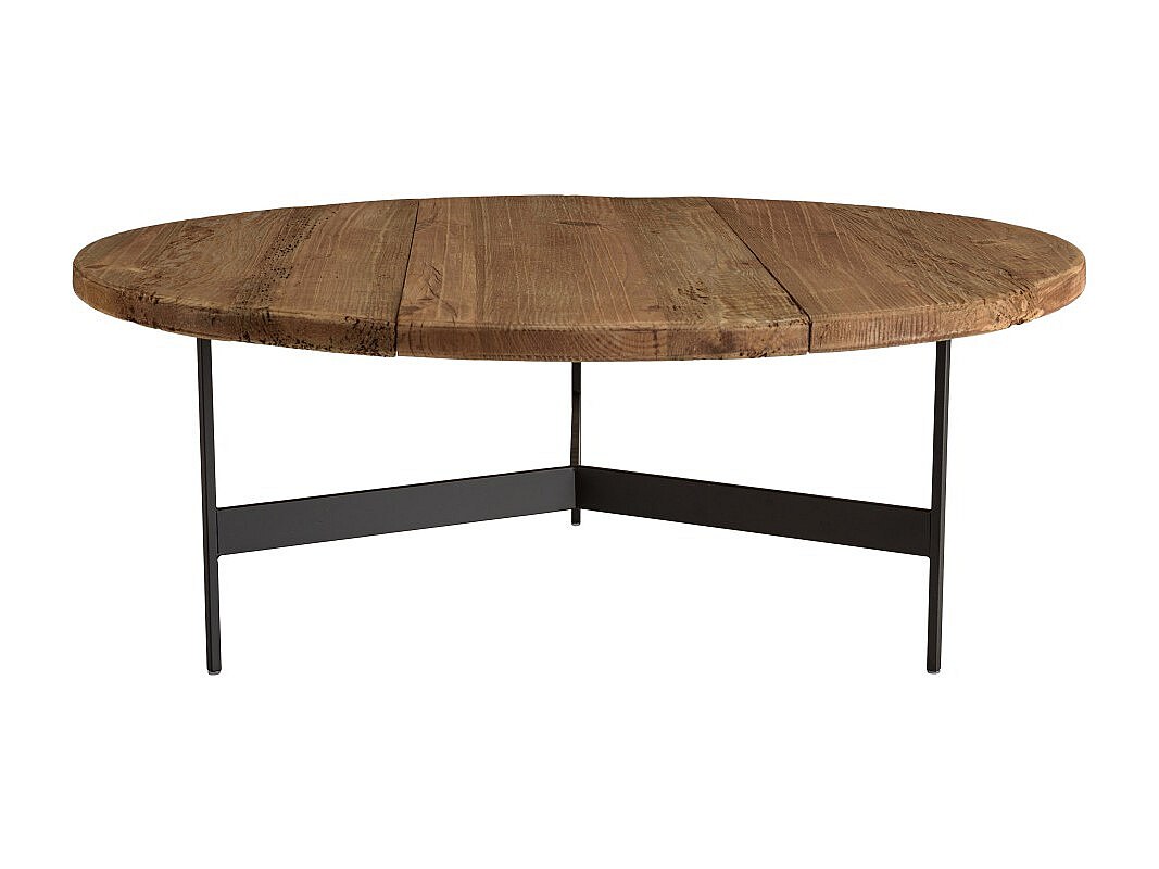 DANDY - Table basse ronde 90x90cm bois Pin recyclé et pieds métal noir
