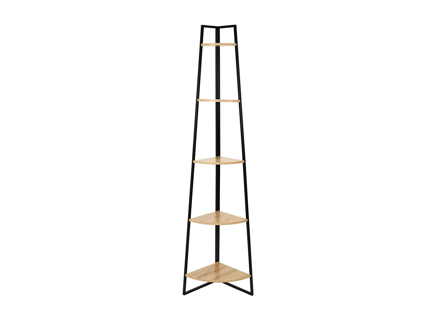 DANGA - Etagère d'Angle Métal Noir Plateau Imitation Bois