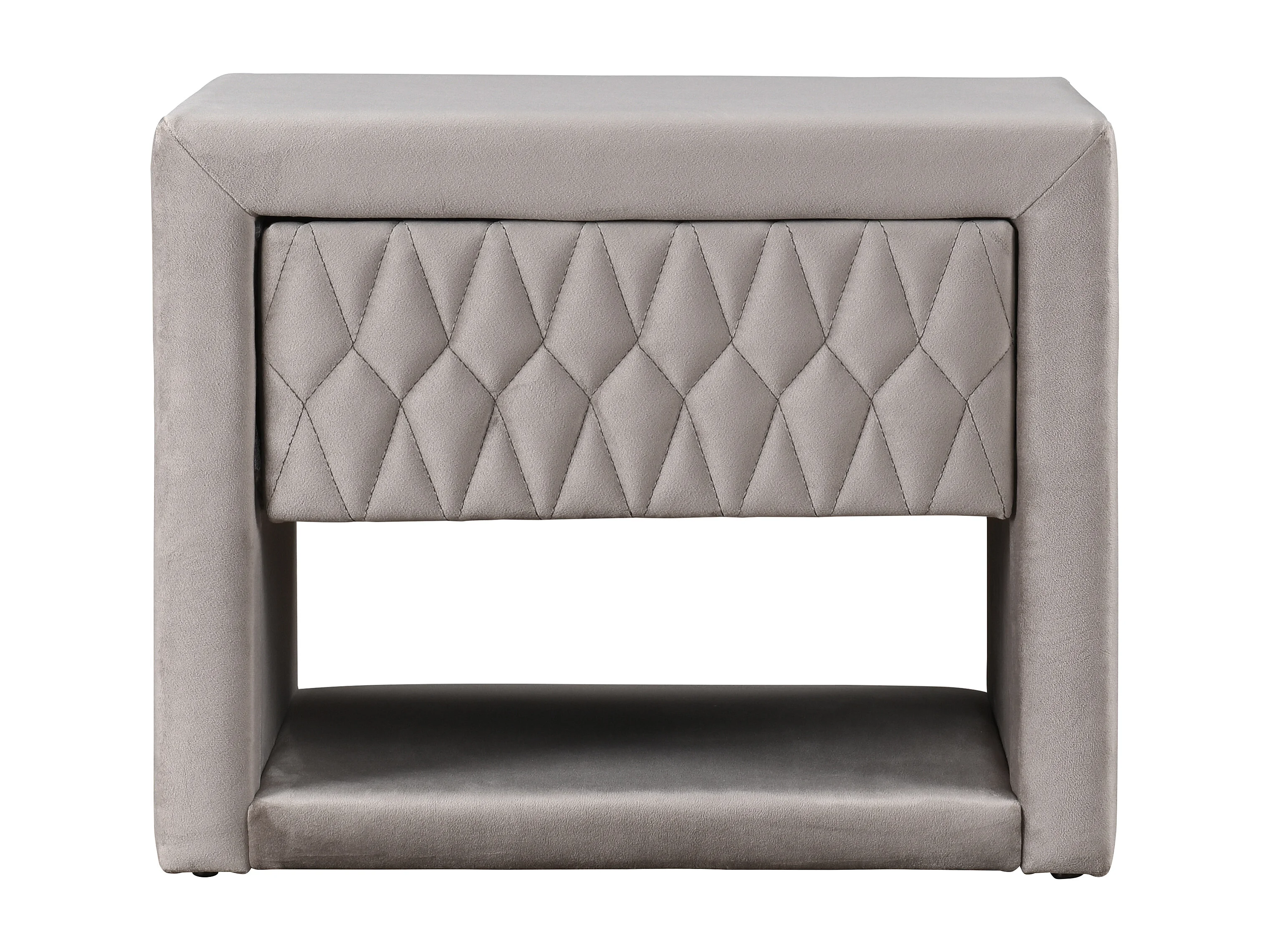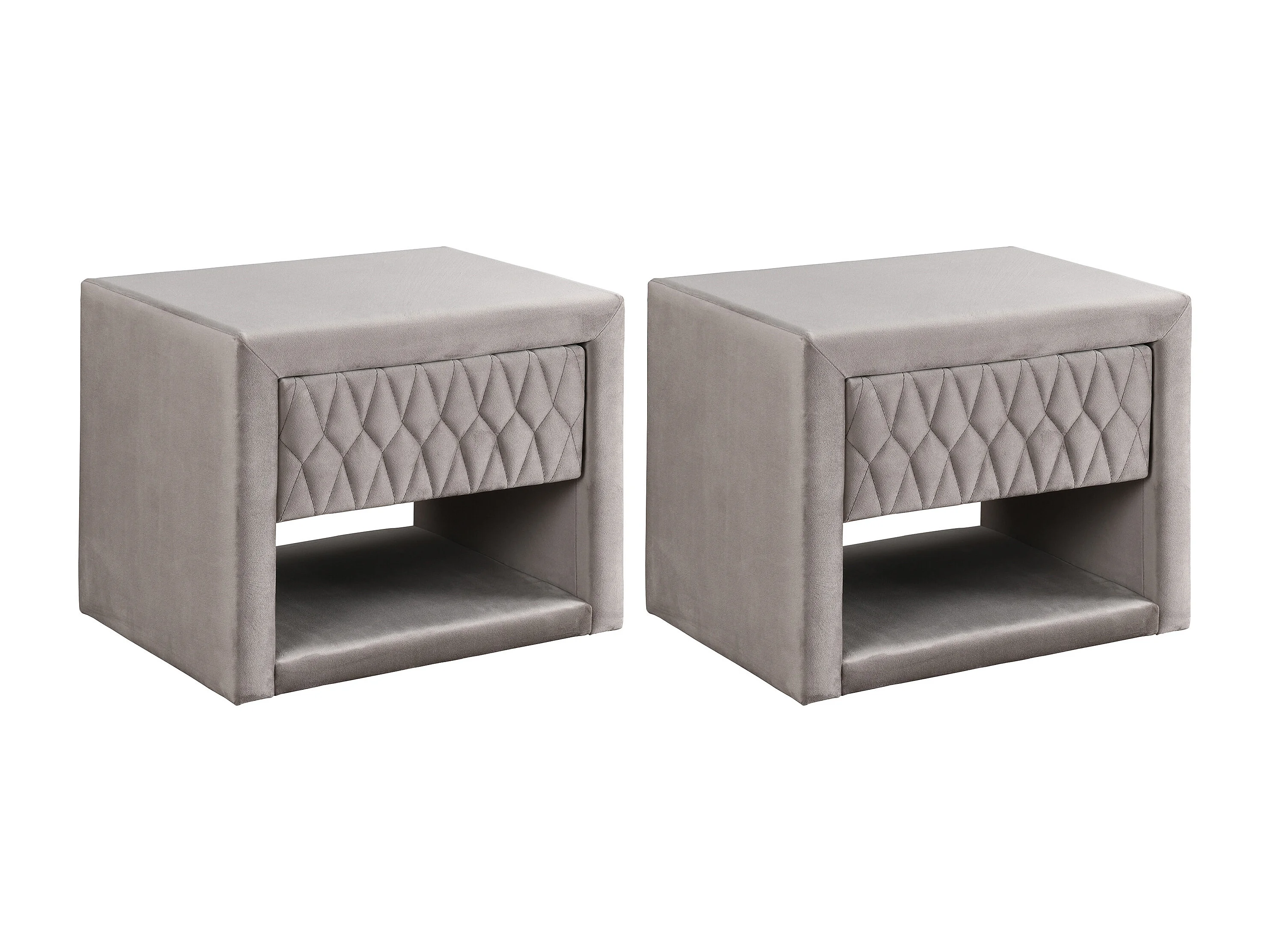 Lot de 2 tables de chevet - 1 tiroir et 1 niche - Tissu velours - Beige - DANIELE