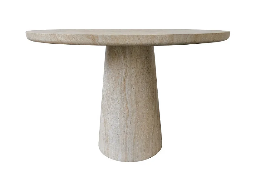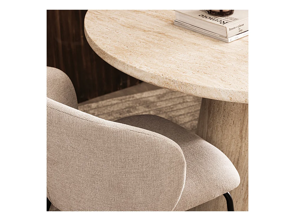 Danli - Table à manger 4 personnes ronde effet travertin - Beige
