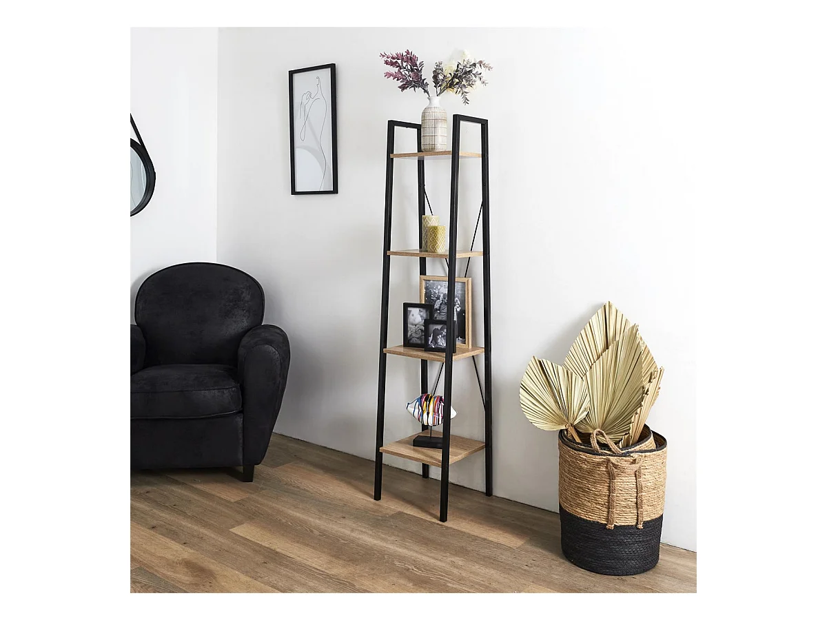 DARA - Etagère Simple 4 Plateaux Métal et Aspect Bois