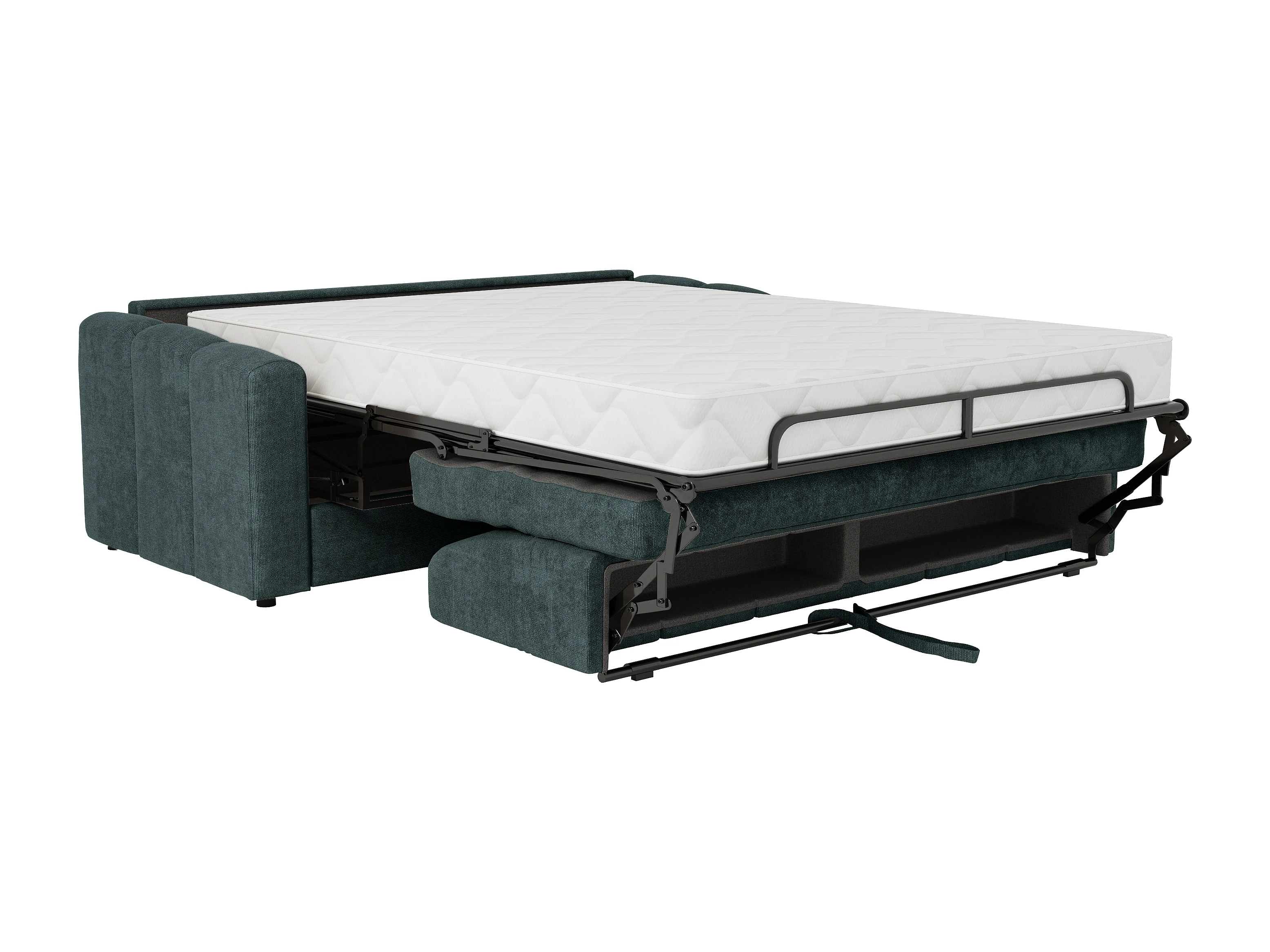 Canapé 3 places convertible express en tissu texturé bleu canard - Couchage 140 cm - Matelas 22 cm avec mémoire de forme - DARIELO