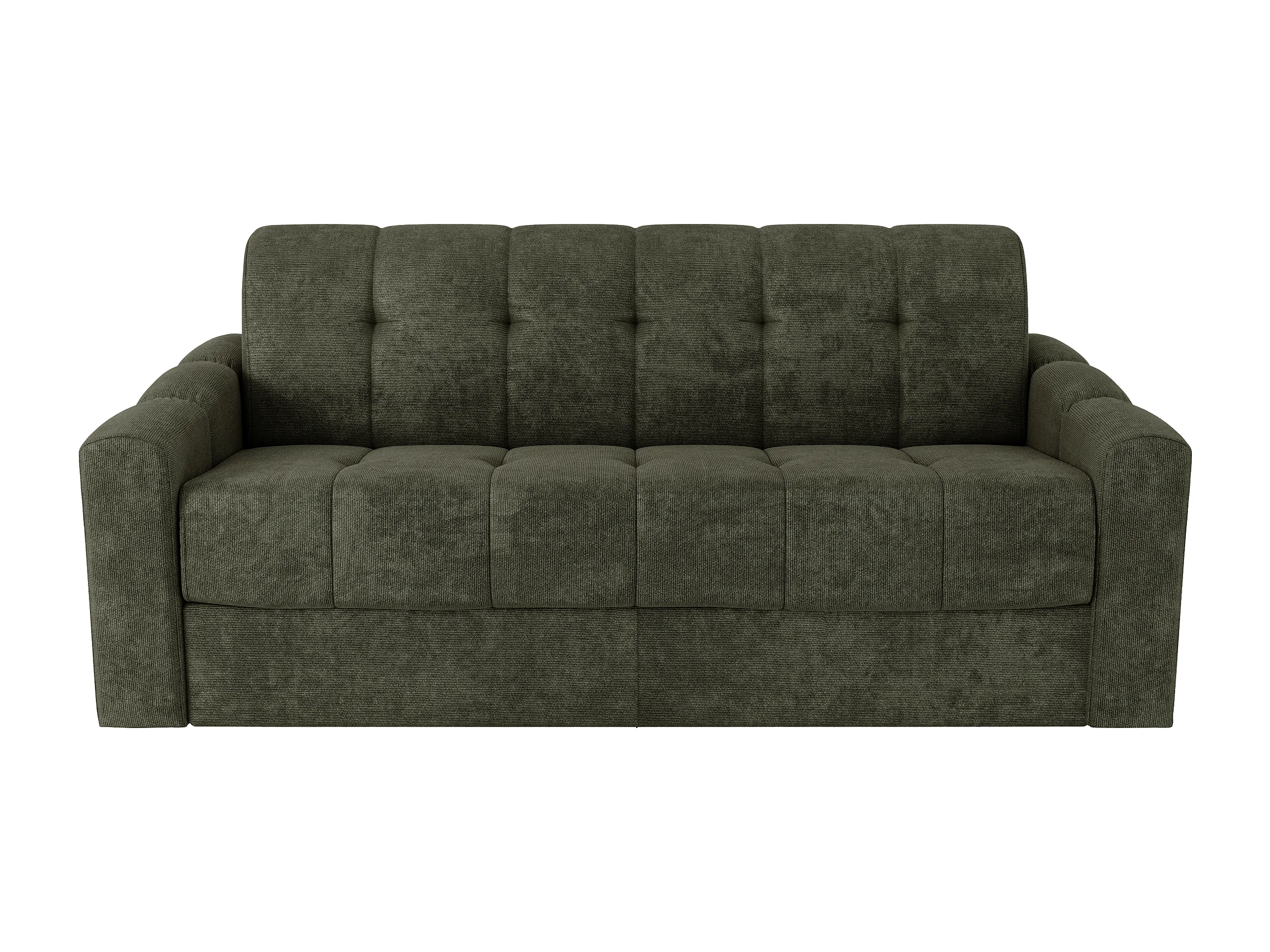 Canapé 3 places convertible express en tissu texturé vert kaki - Couchage lattes larges 140 cm - Matelas 22 cm avec mémoire de forme - DARIELO