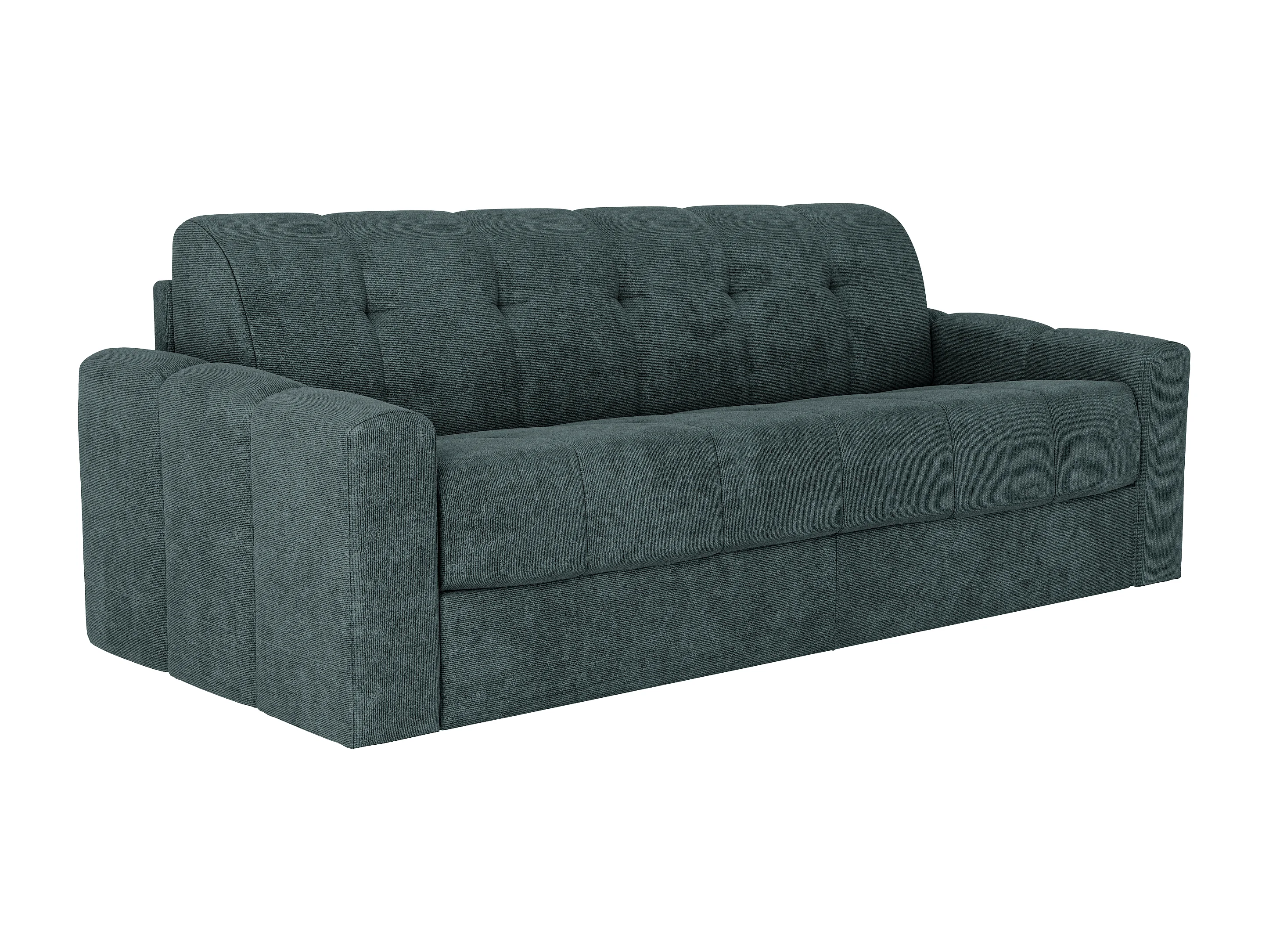 Canapé 4 places convertible express en tissu texturé bleu canard - Couchage lattes larges 160 cm - Matelas 22 cm avec mémoire de forme - DARIELO