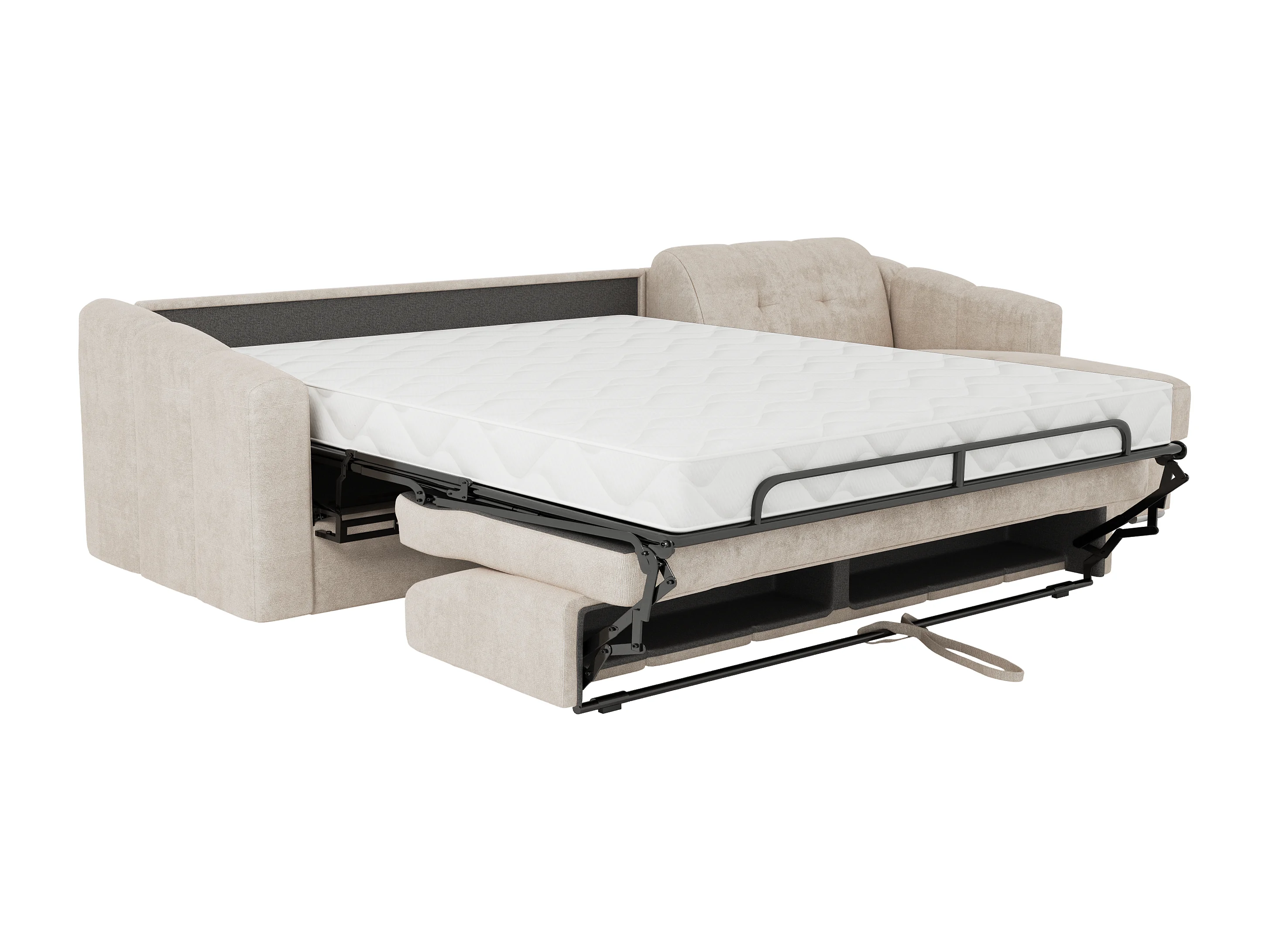 Canapé d'angle convertible express en tissu texturé beige - Couchage lattes larges 140 cm - Matelas 22 cm avec mémoire de forme - DARIELO