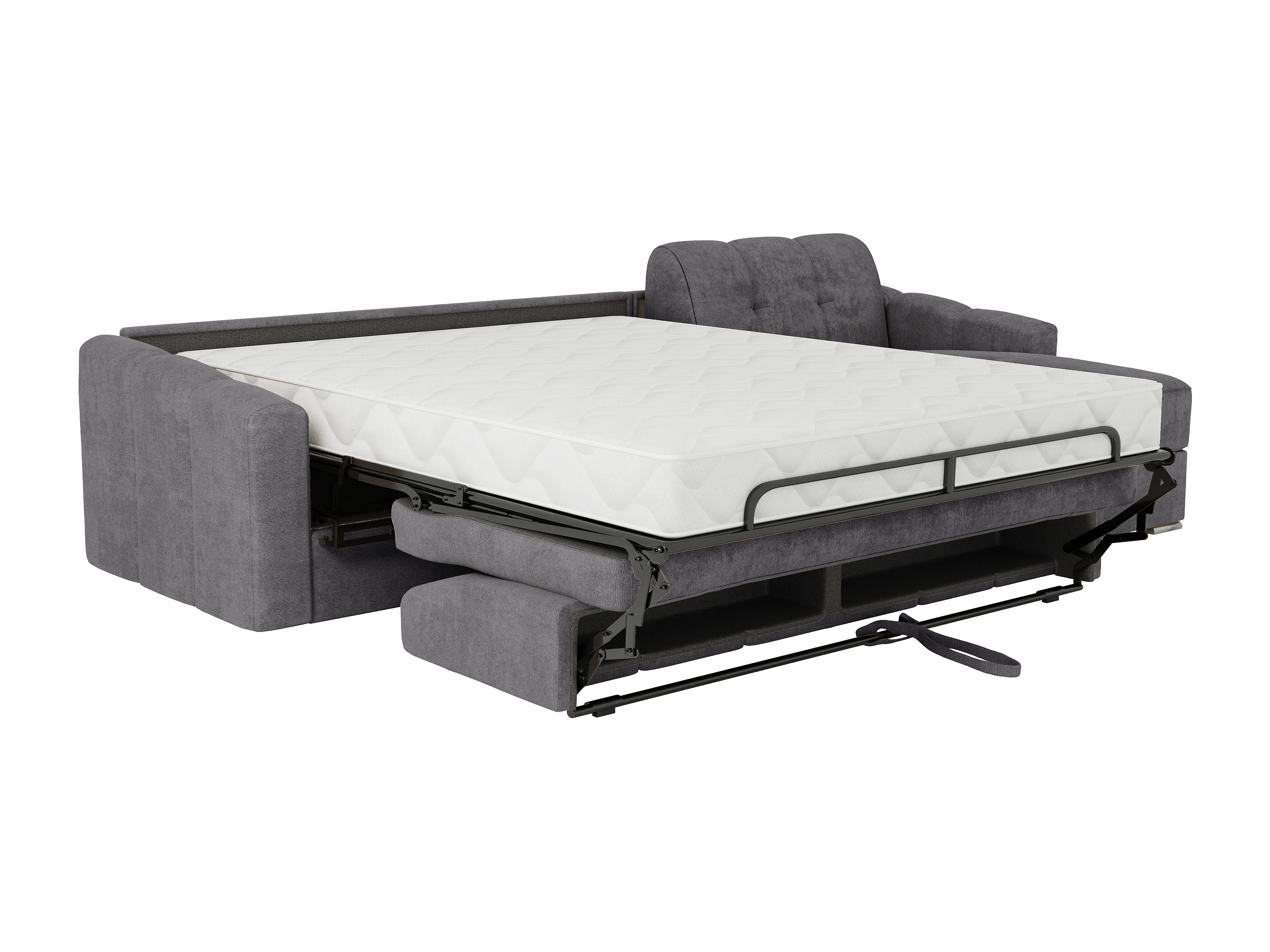 Canapé d'angle convertible express en tissu texturé gris - Couchage 140 cm - Matelas 22 cm avec mémoire de forme - DARIELO