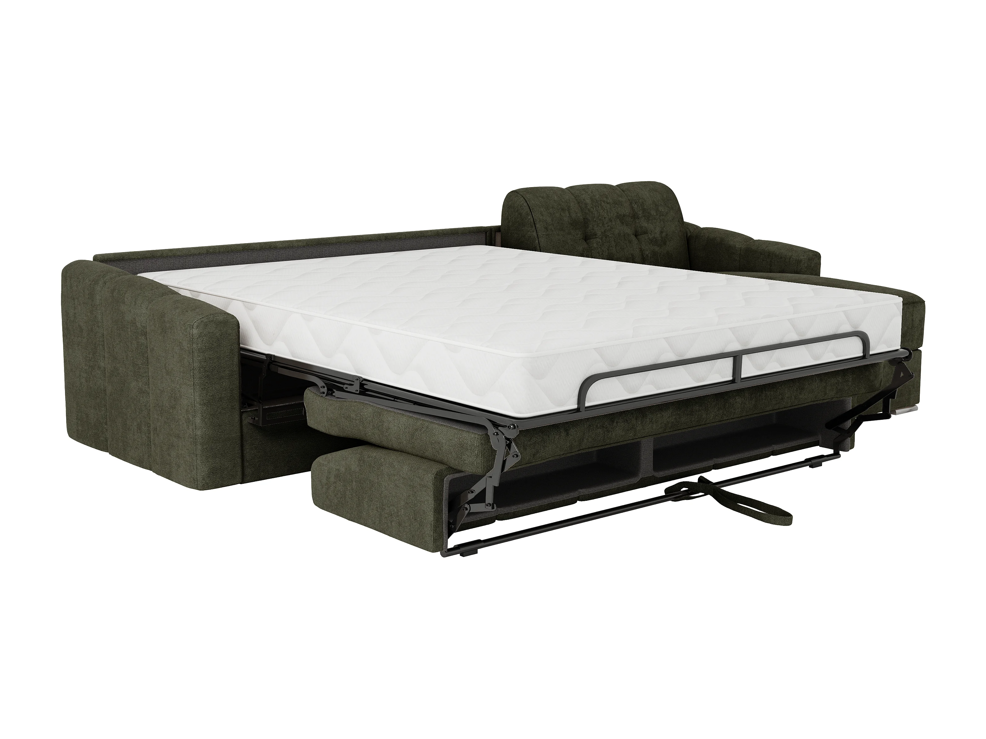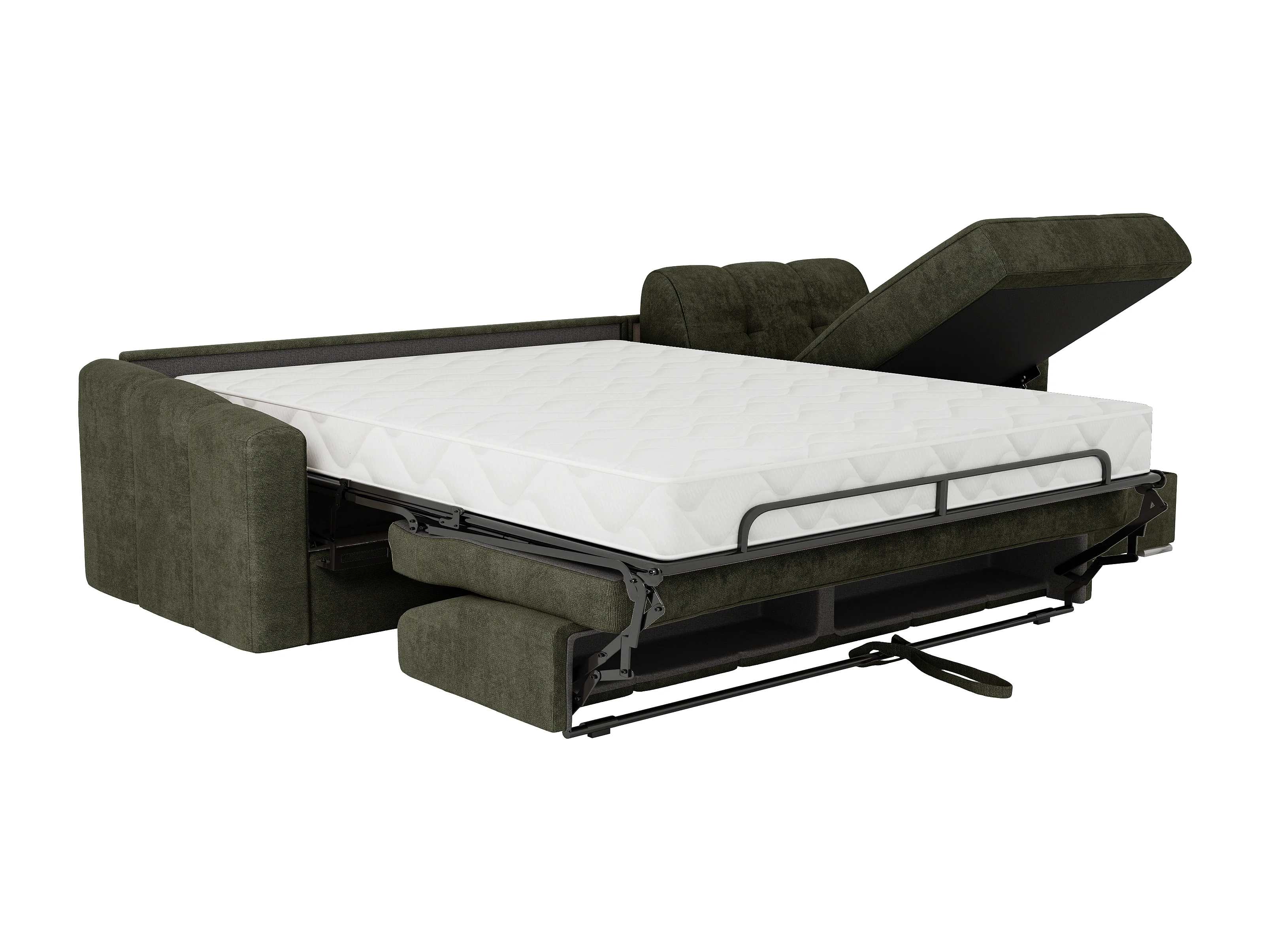 Canapé d'angle convertible express en tissu texturé vert kaki - Couchage 140 cm - Matelas 22 cm avec mémoire de forme - DARIELO