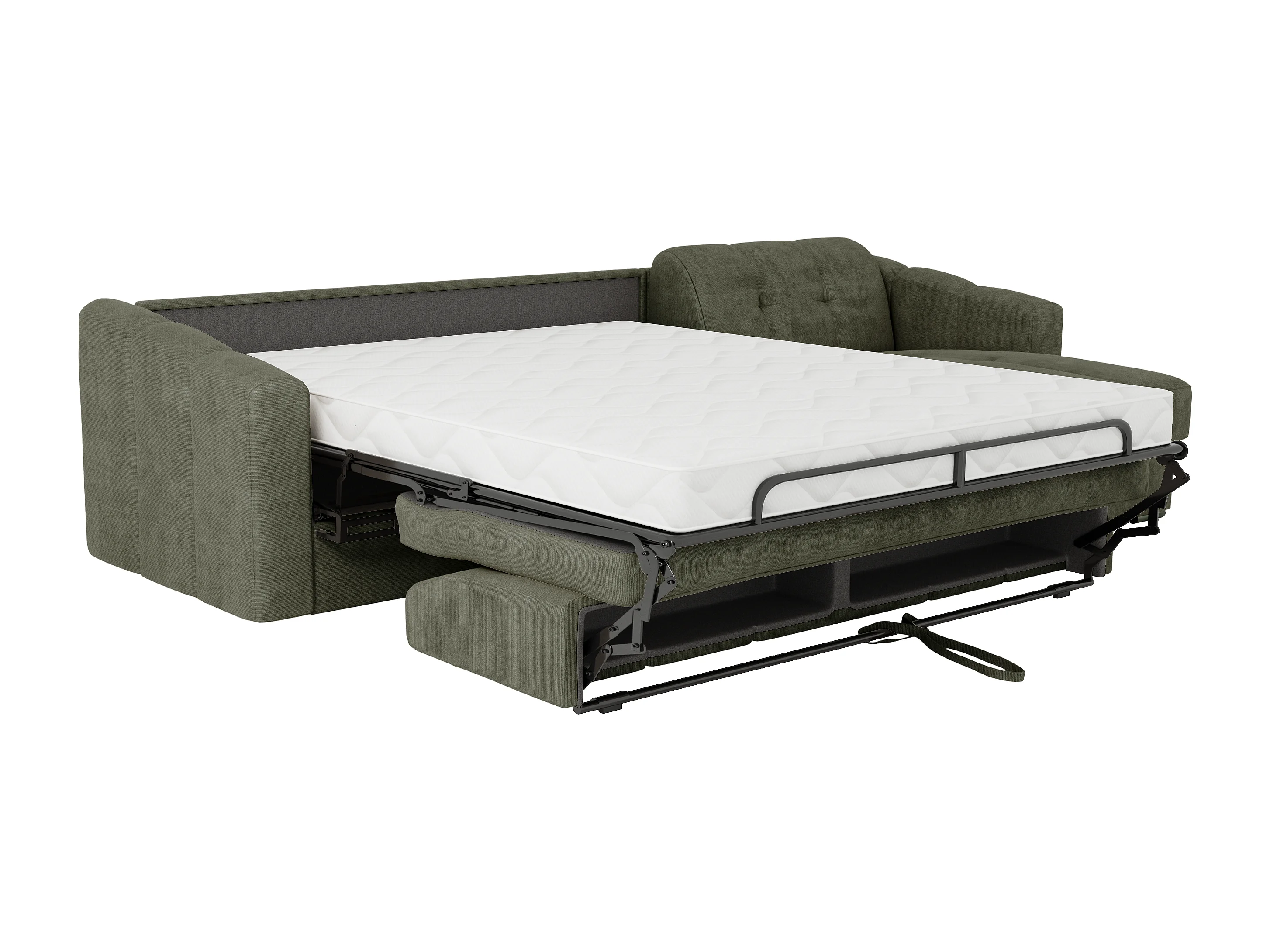 Canapé d'angle convertible express en tissu texturé vert kaki - Couchage lattes larges 140 cm - Matelas 18 cm - DARIELO