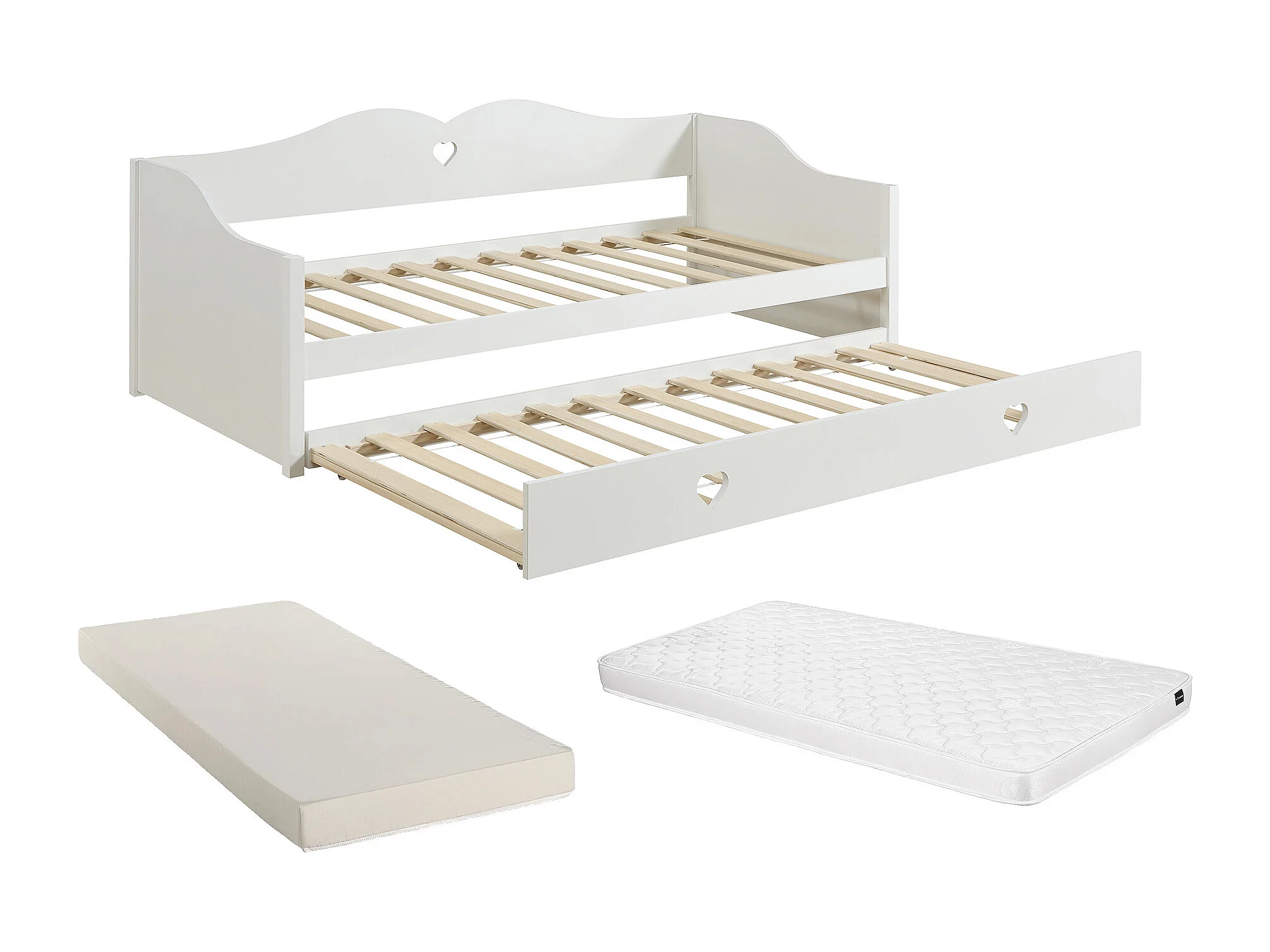 Lit banquette gigogne 2 x 90 x 190 cm - Pin et MDF - Blanc + Matelas - DASTIVA