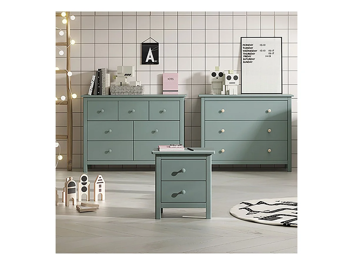 DAVA - Chevet 2 Tiroirs en Pin Massif Vert Pétrole