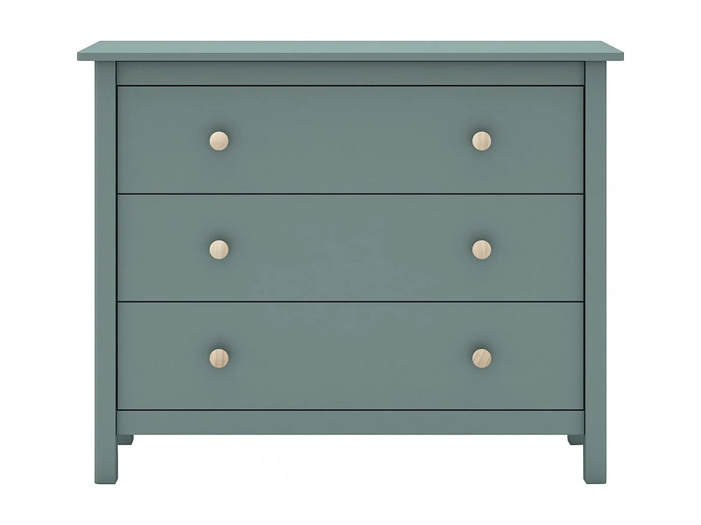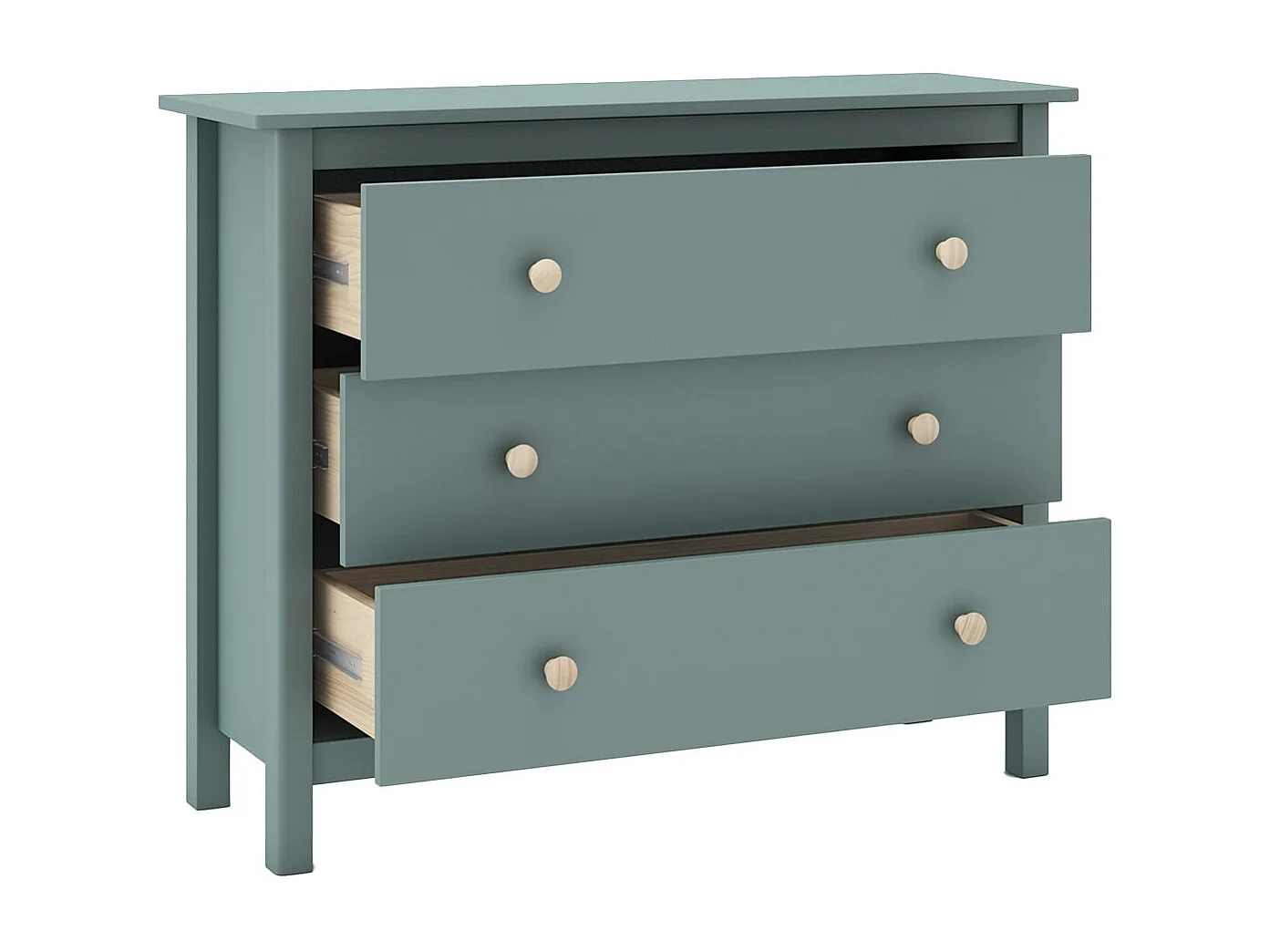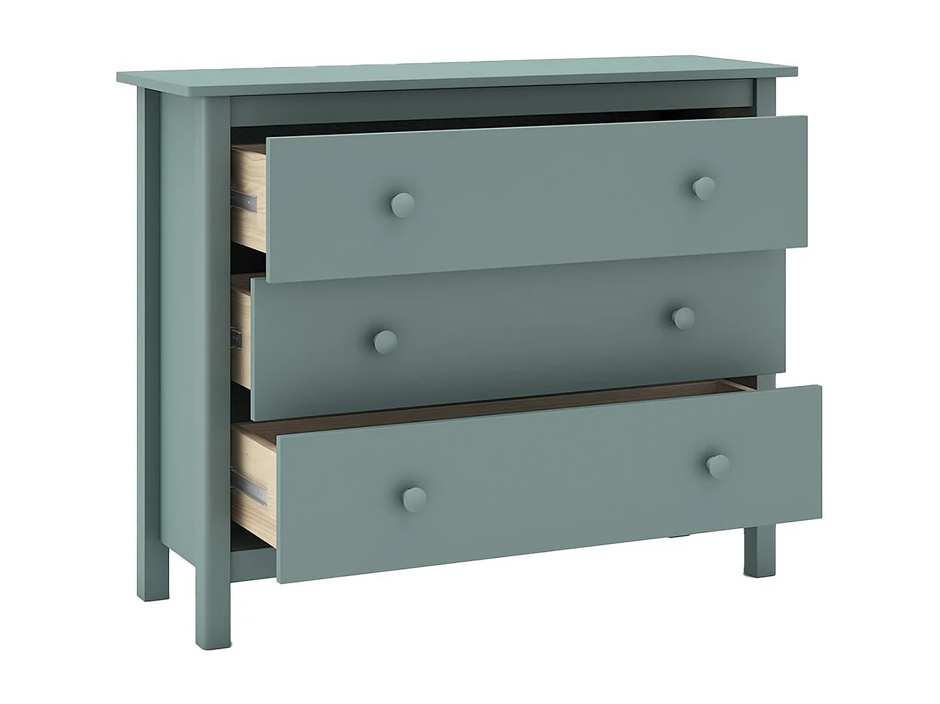 DAVA - Commode 3 Tiroirs en Pin Massif Vert Pétrole